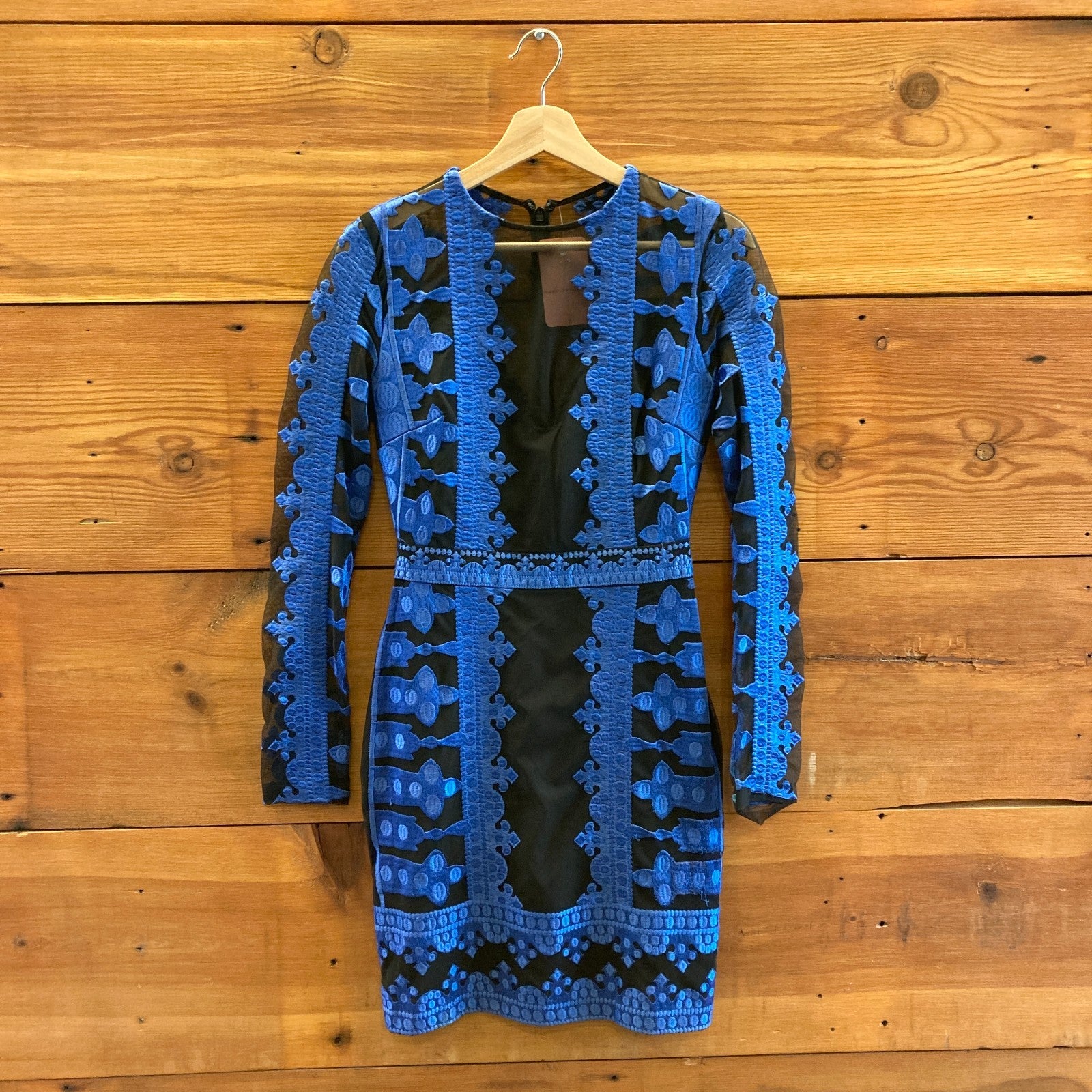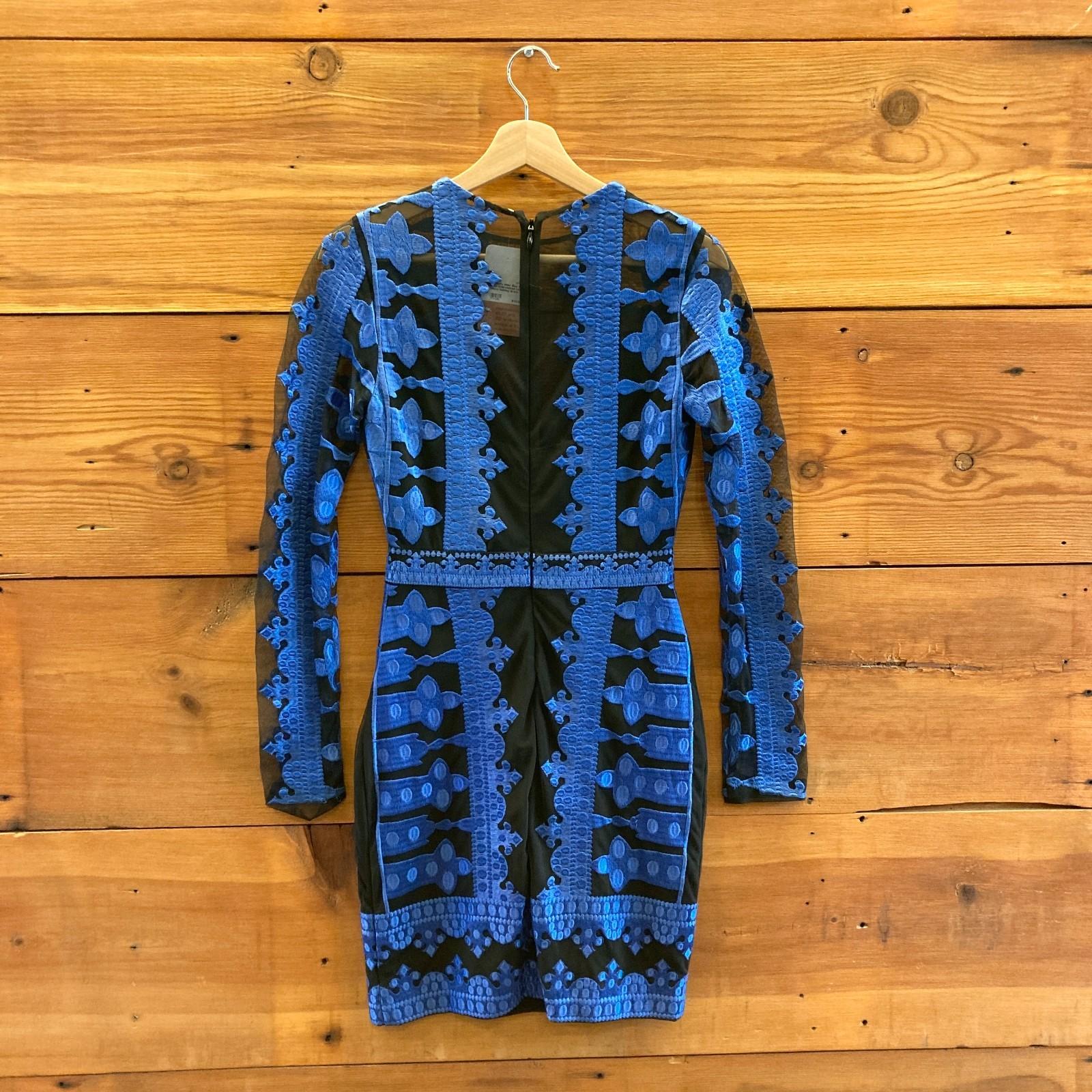 0 - Nicole Miller Blue & Black Embroidered Long Sleeve Holiday Dress 1125RS