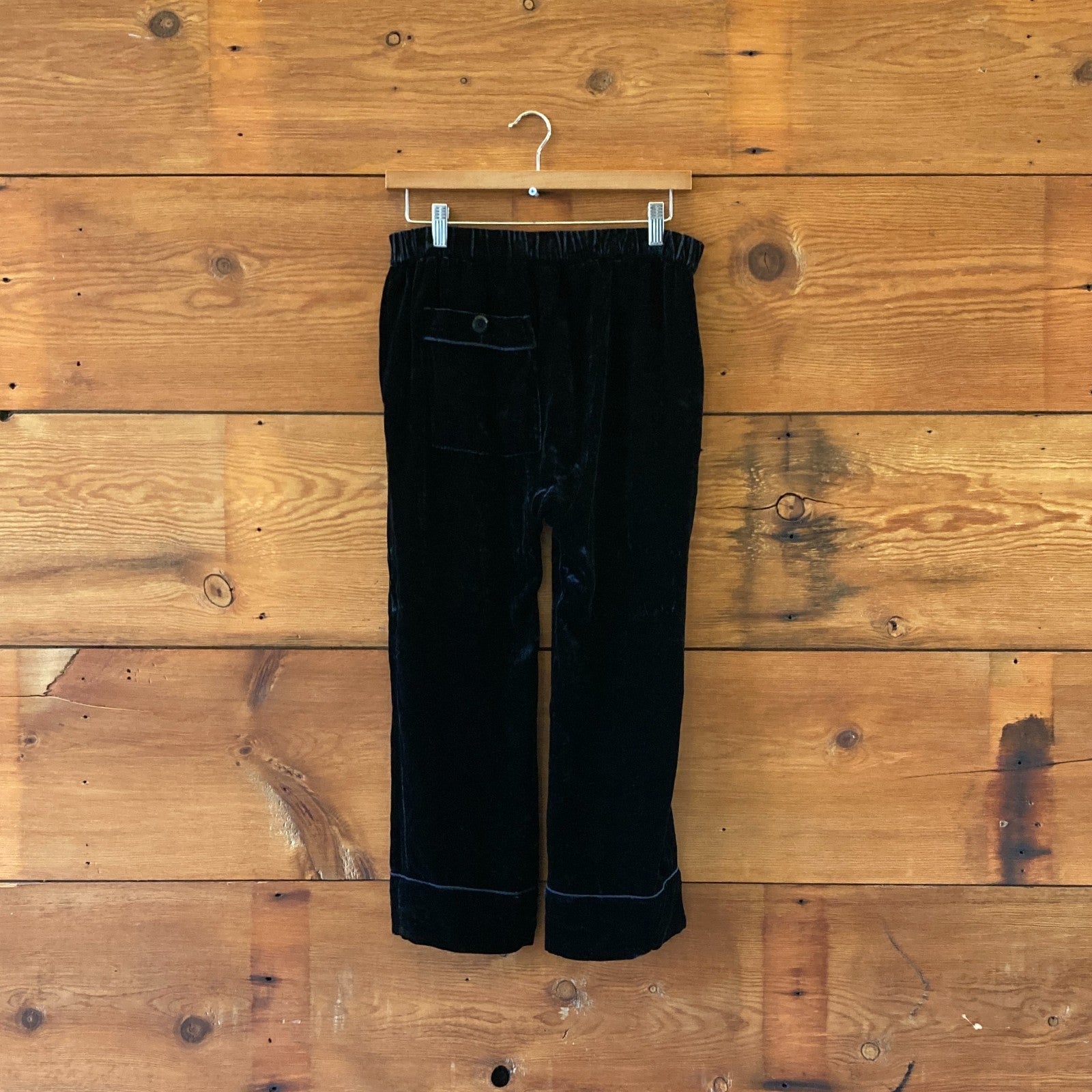 - Velvet trouser with classic pajama trims and an elastic waistband.