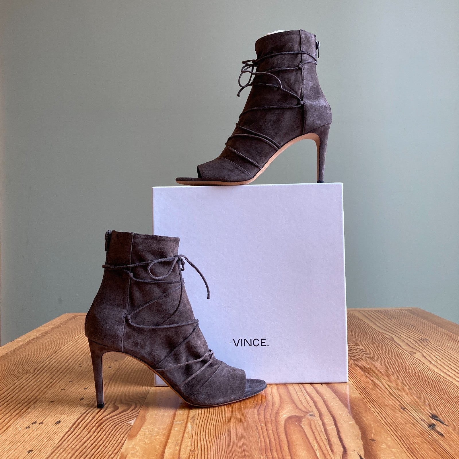 11 - Vince $425 Smoke Gray Open Toe Adisa Lace Heels Shoes NEW w/ Box 0919LF