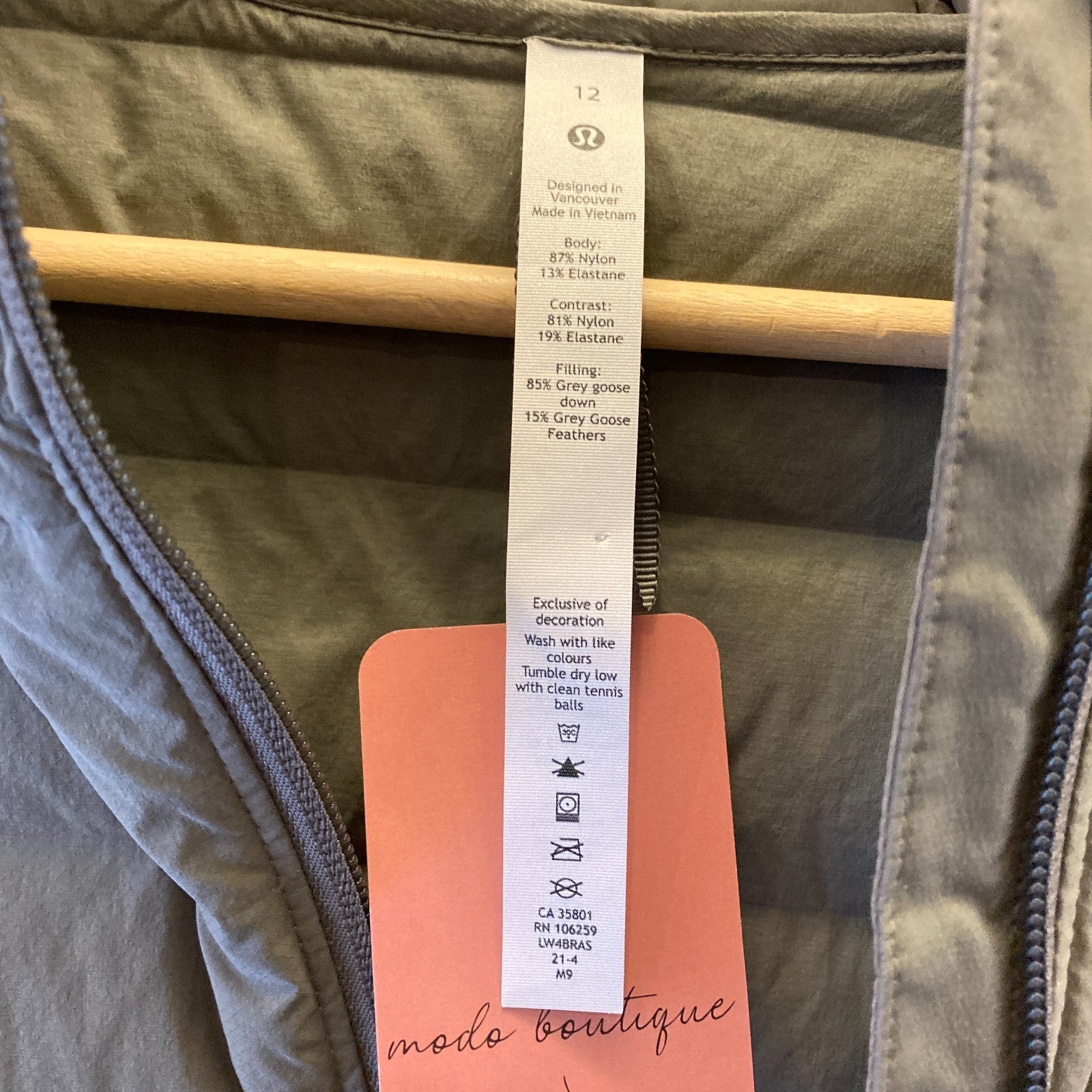 12 - Lululemon Green Gray Hooded Zip Up Goose 700 Down & Around Vest 0206SB