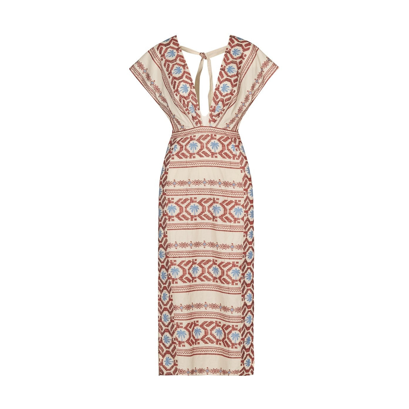 - Crafted from intricately embroidered cotton voile, this dress is something special. The slip-on style—with its plunging neckline, straight skirt, and side slits—is equal parts effortless and elegant. Our suggestion? Pair it with simple sandals and let the dress take center stage.