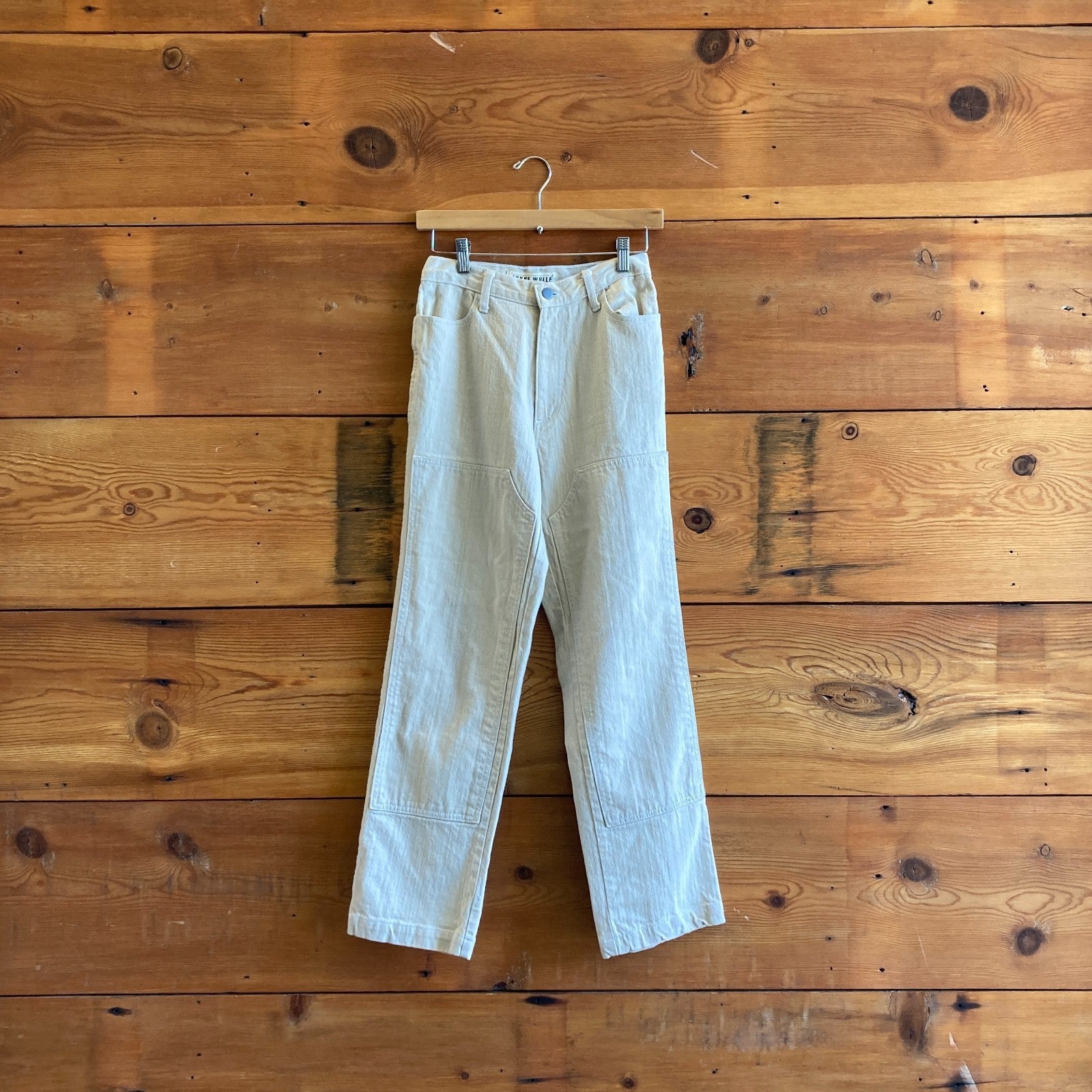 2 - LYKKE WULLF Beige Contrast Stitch High Waist Workwear Pants 0312IG