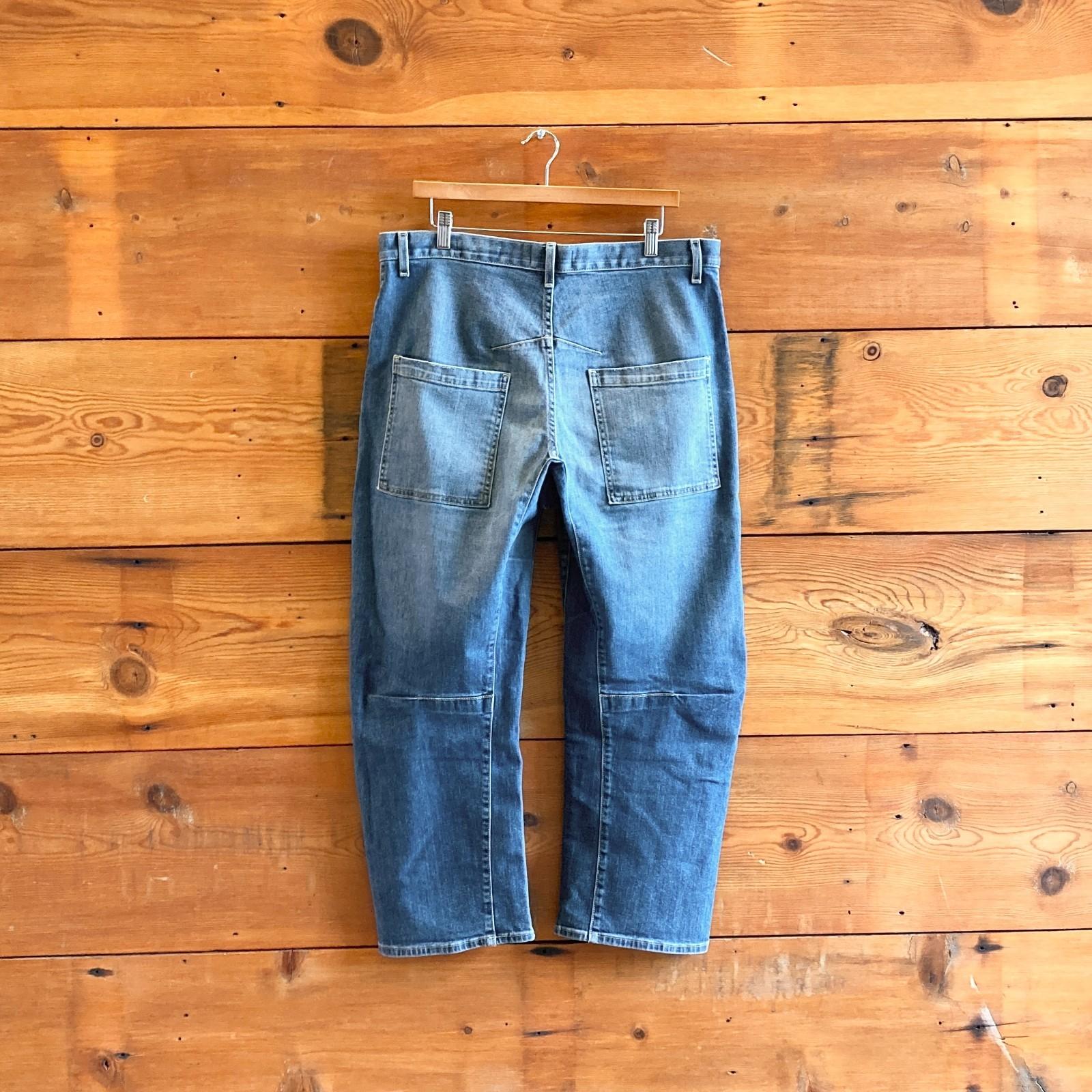 - Cut in a barrel-leg silhouette, Nili Lotan's curved Shon jeans flaunt an ankle-crop fit and multiple patch pockets.