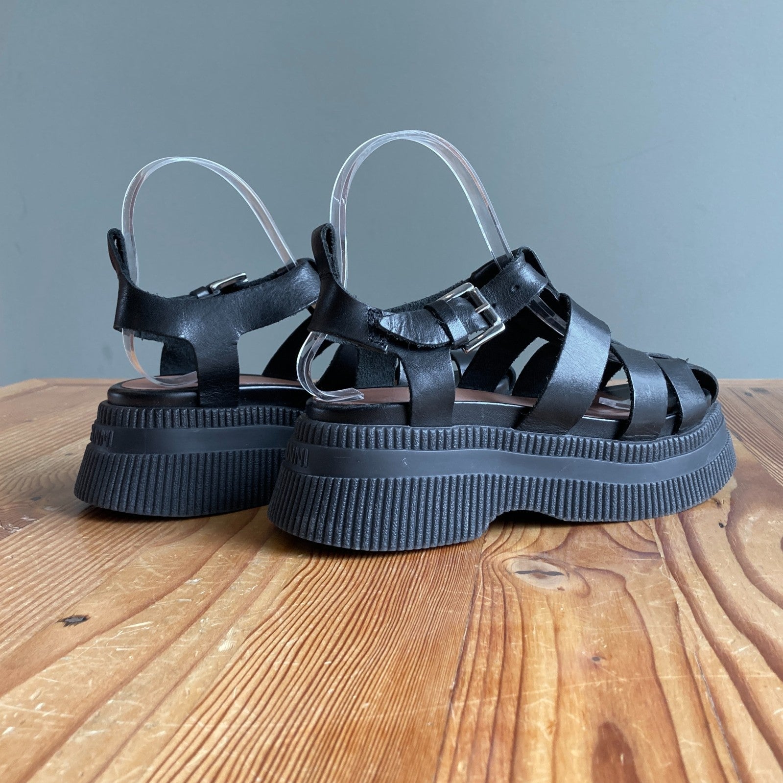 36 / 5.5 - GANNI Black Leather Platform Creepers Fisherman Sandals Shoes 0312IG