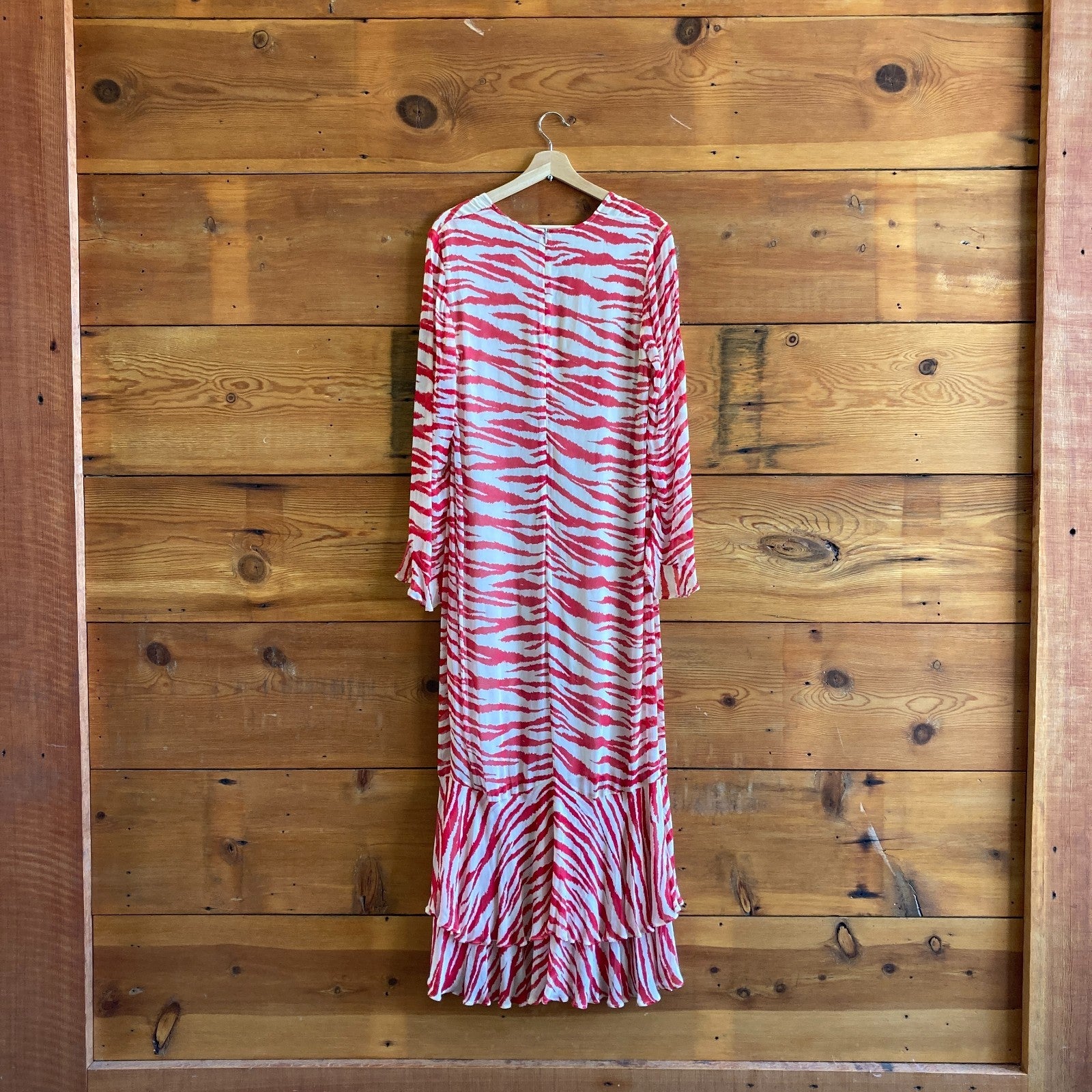 36 / M - Ganni Red & White Zebra Patterned Long Sleeve Georgette Dress 1022ED