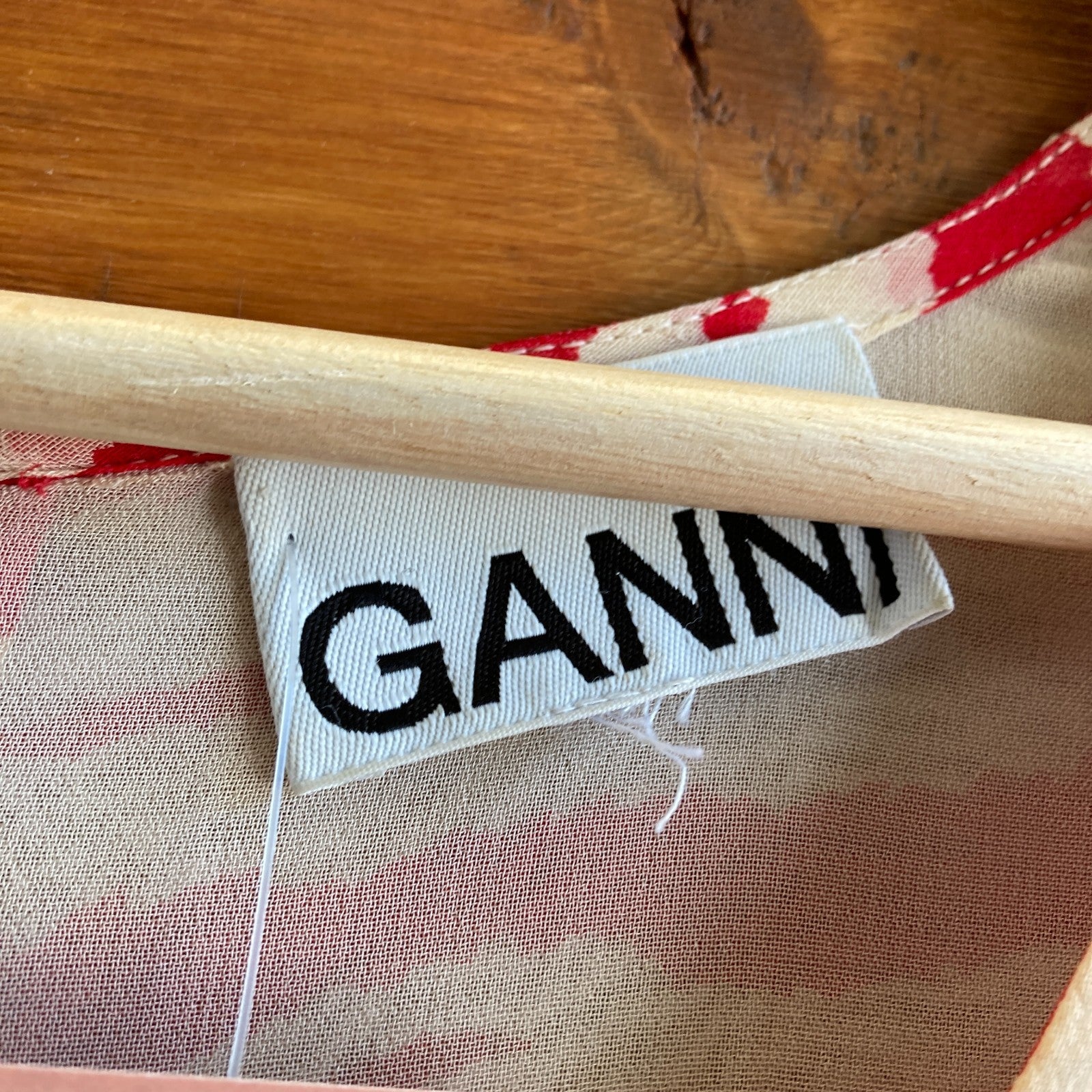 - Ganni offsets its love for bold prints with feminine features like a ruched waist and frilled accents with this maxi dress. Its soft, lightweight georgette fabric further romanticises its elegant, floor-skimming shape. Add strappy heels and a clutch as the finishing touch.