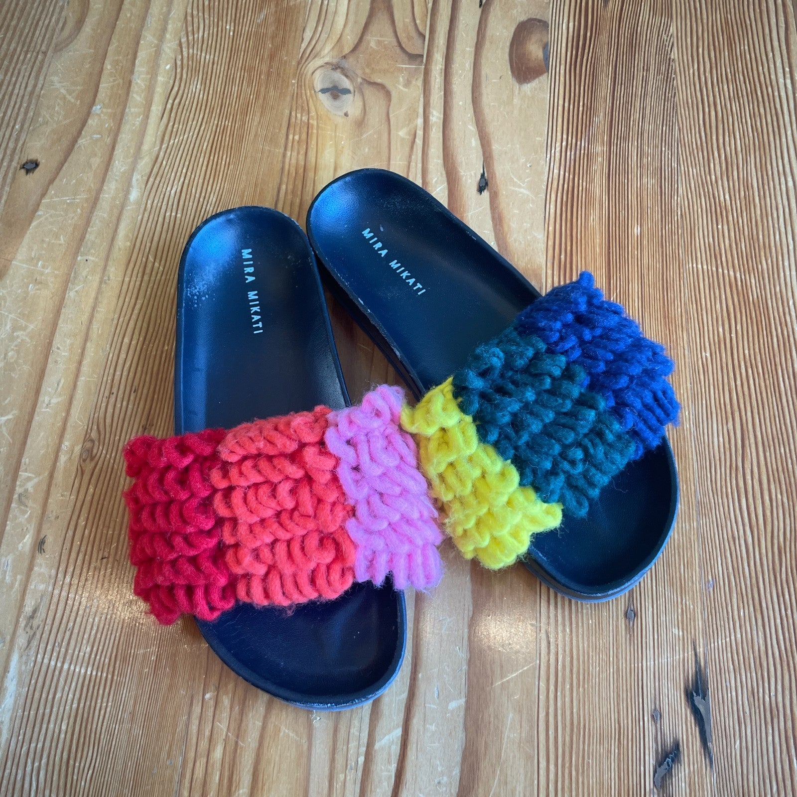 38 / .5-8 - Mira Mikati Playful Color Block Loop Knit Slides Sandals 0611AJ
