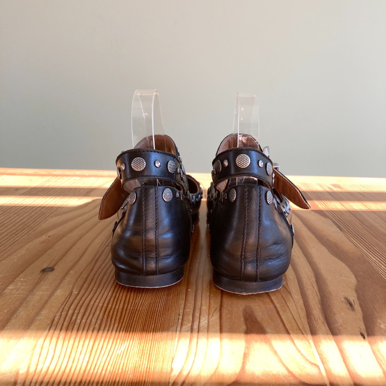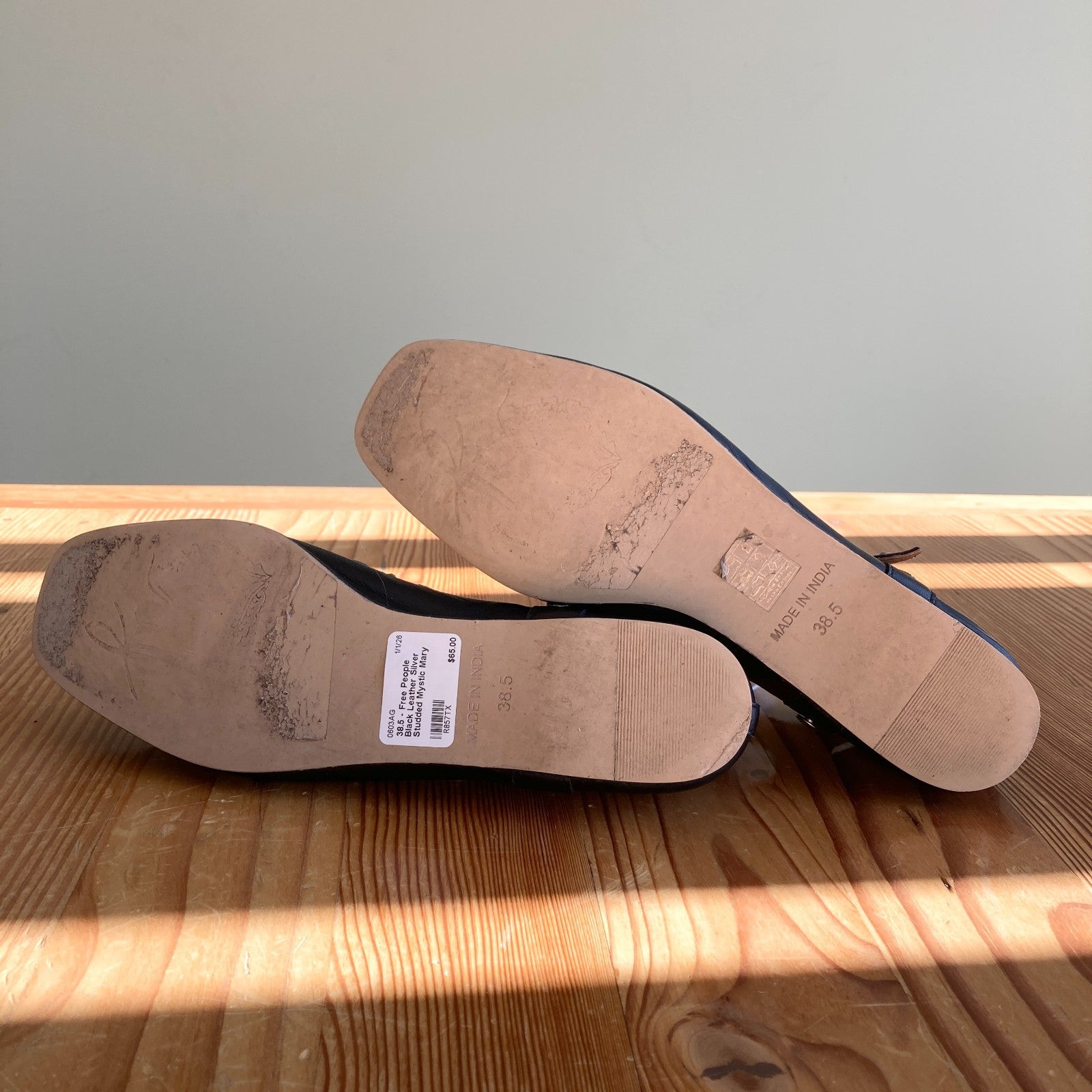 38.5 - Free People Black Leather Silver Studded Mystic Mary Jane Flats 0603AG