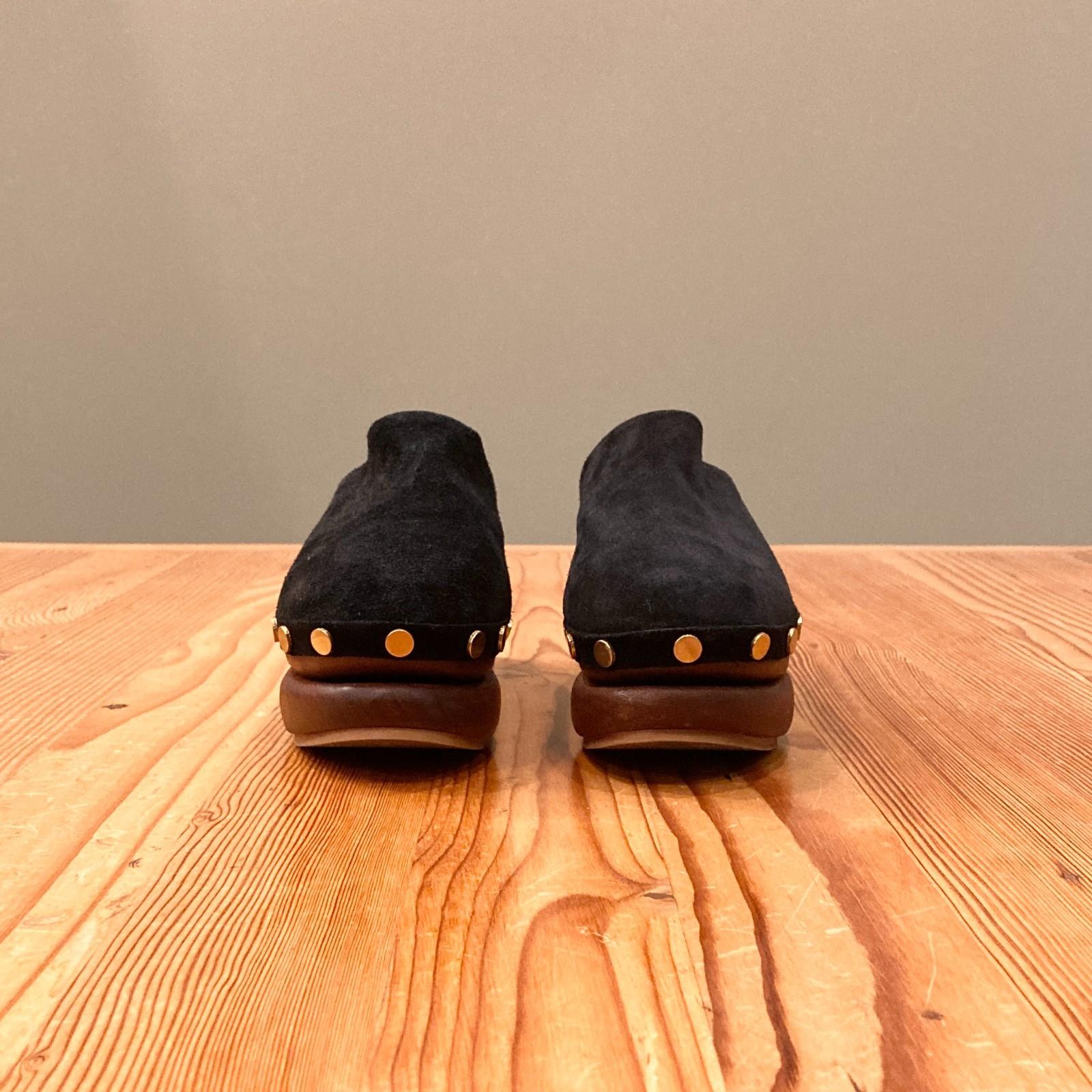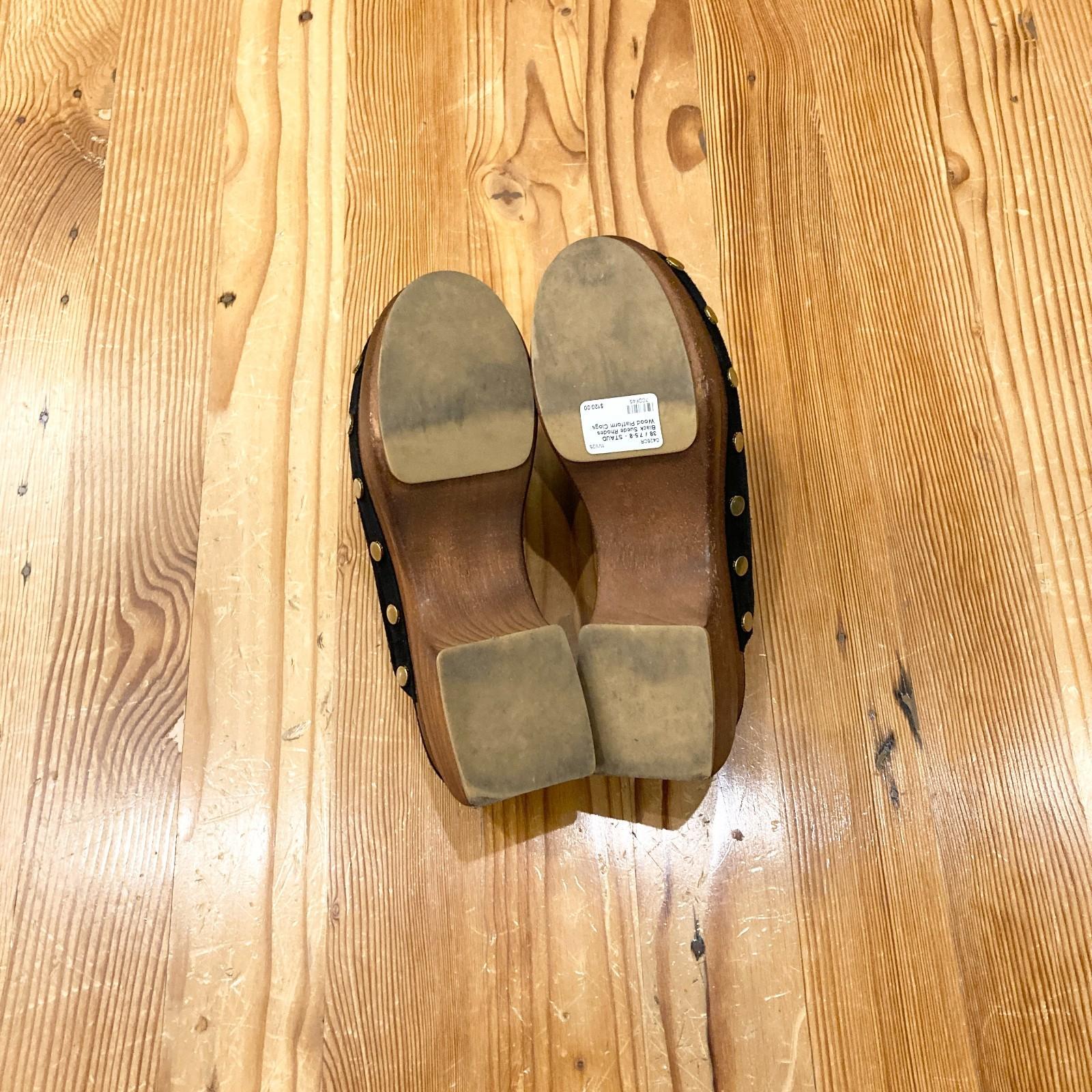 38 / 7.5-8 - STAUD Black Suede Rhodes Wood Platform Clogs Shoes 0426CR