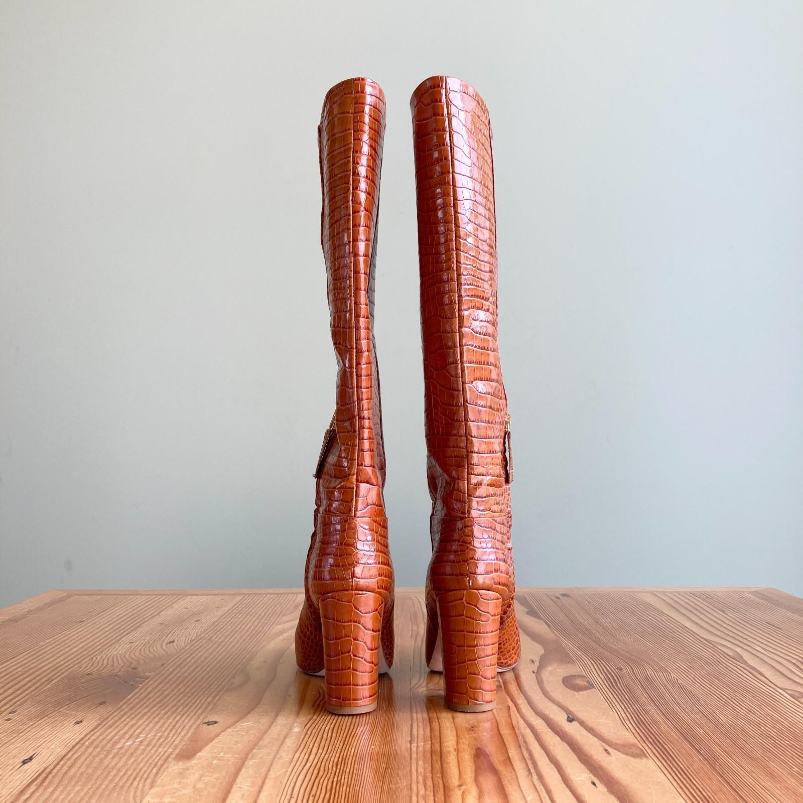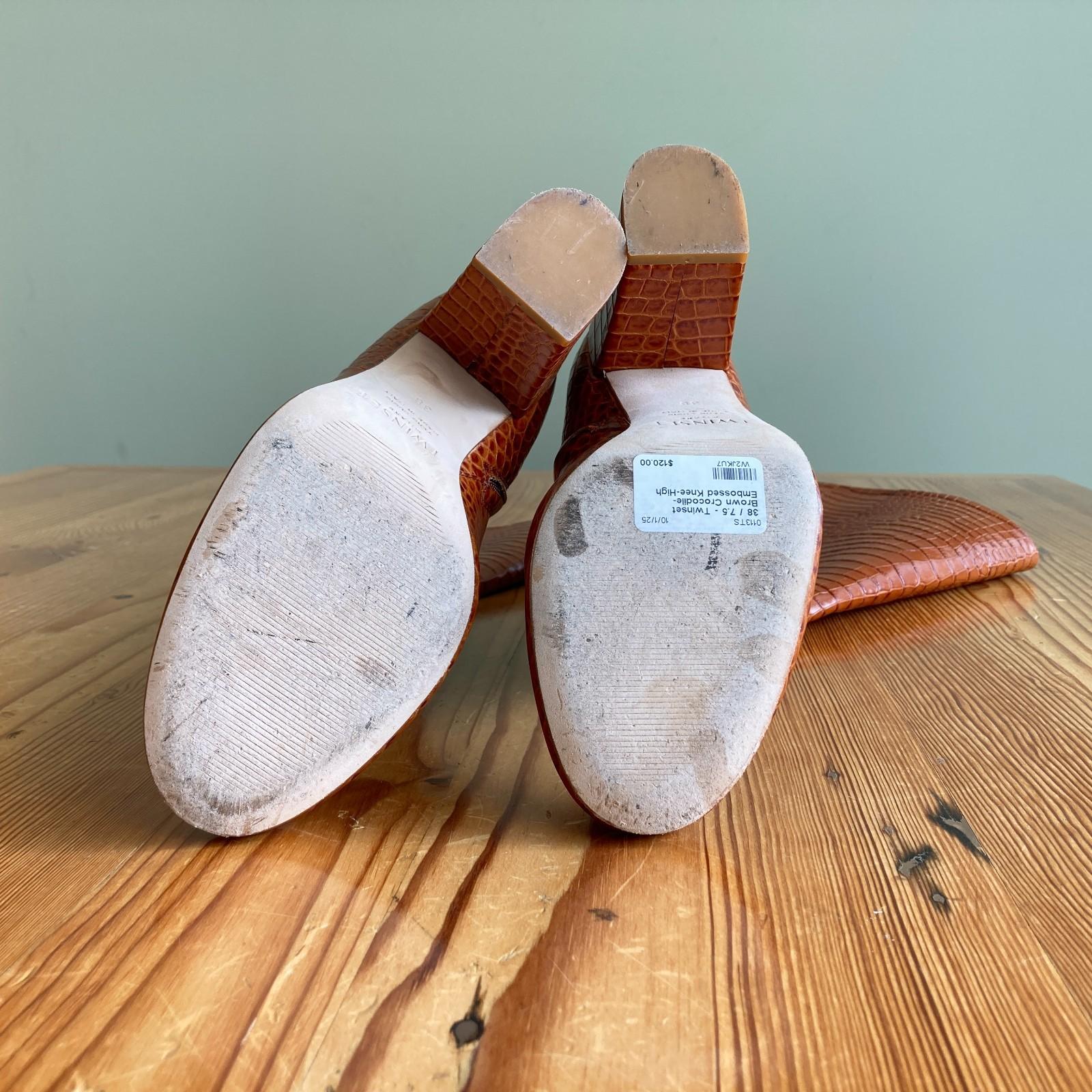 38 / 7.5 - Twinset Brown Crocodile-Embossed Knee-High Heeled Boots 0113TS