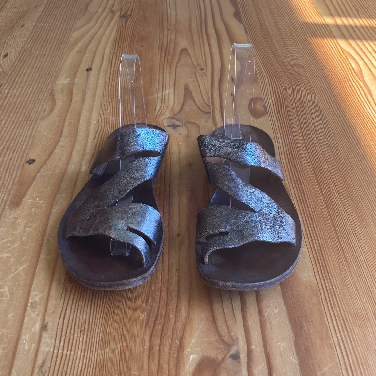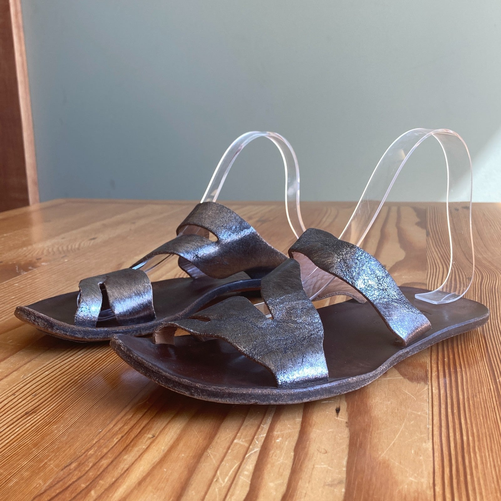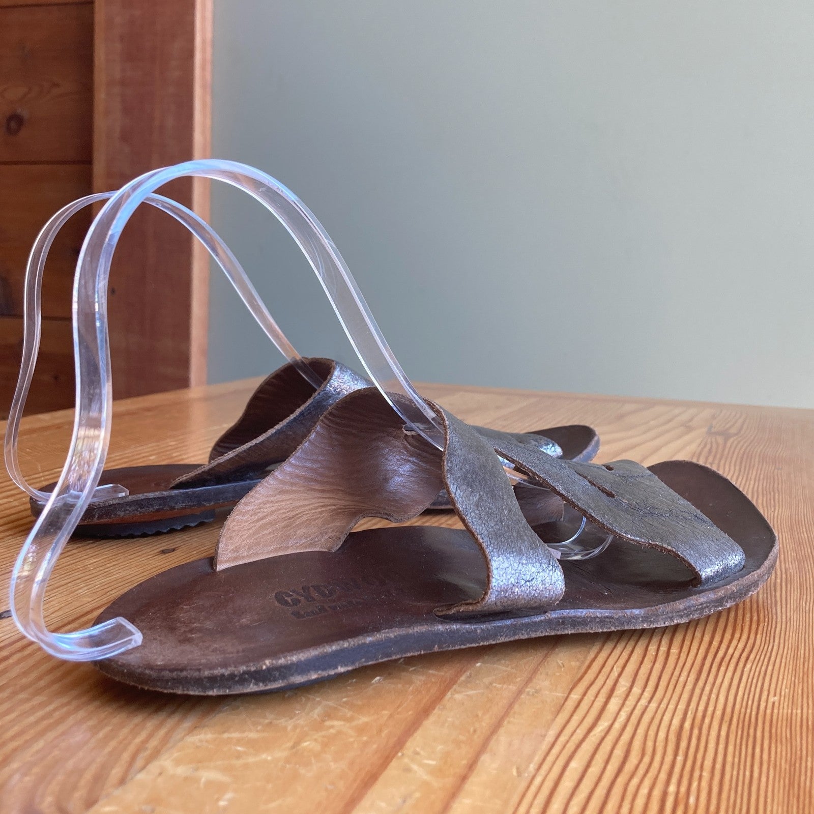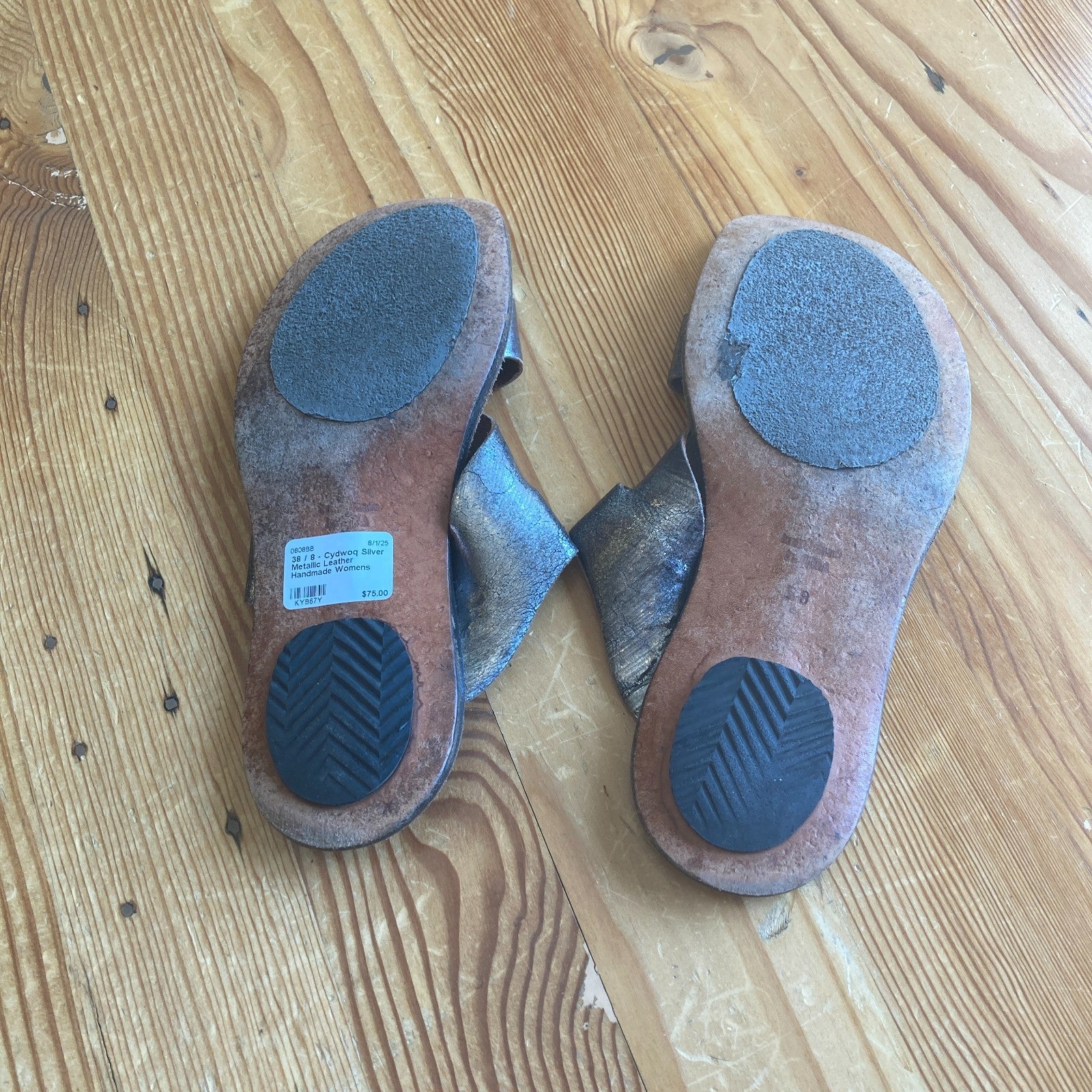 38 / 8 - Cydwoq Silver Metallic Leather Handmade Womens Admit Sandals 0808BB