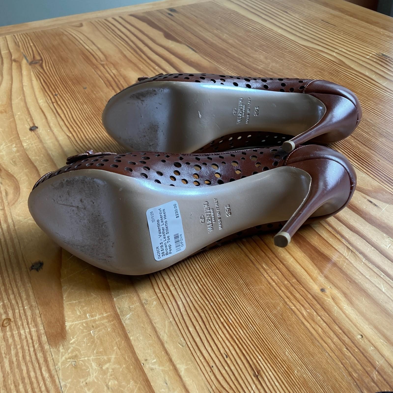 39.5/9.5 - Valentino Brown Leather Lasercut Peep Toe Stiletto Heels Shoes 0426CR