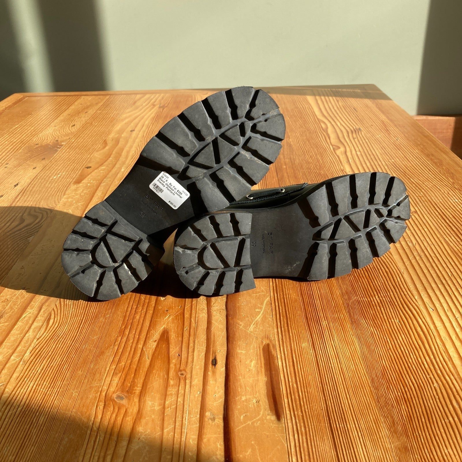 39 / 9 - By Far $285 Black Glossed Leather Stanley Platform Loafers Shoes 1030SF