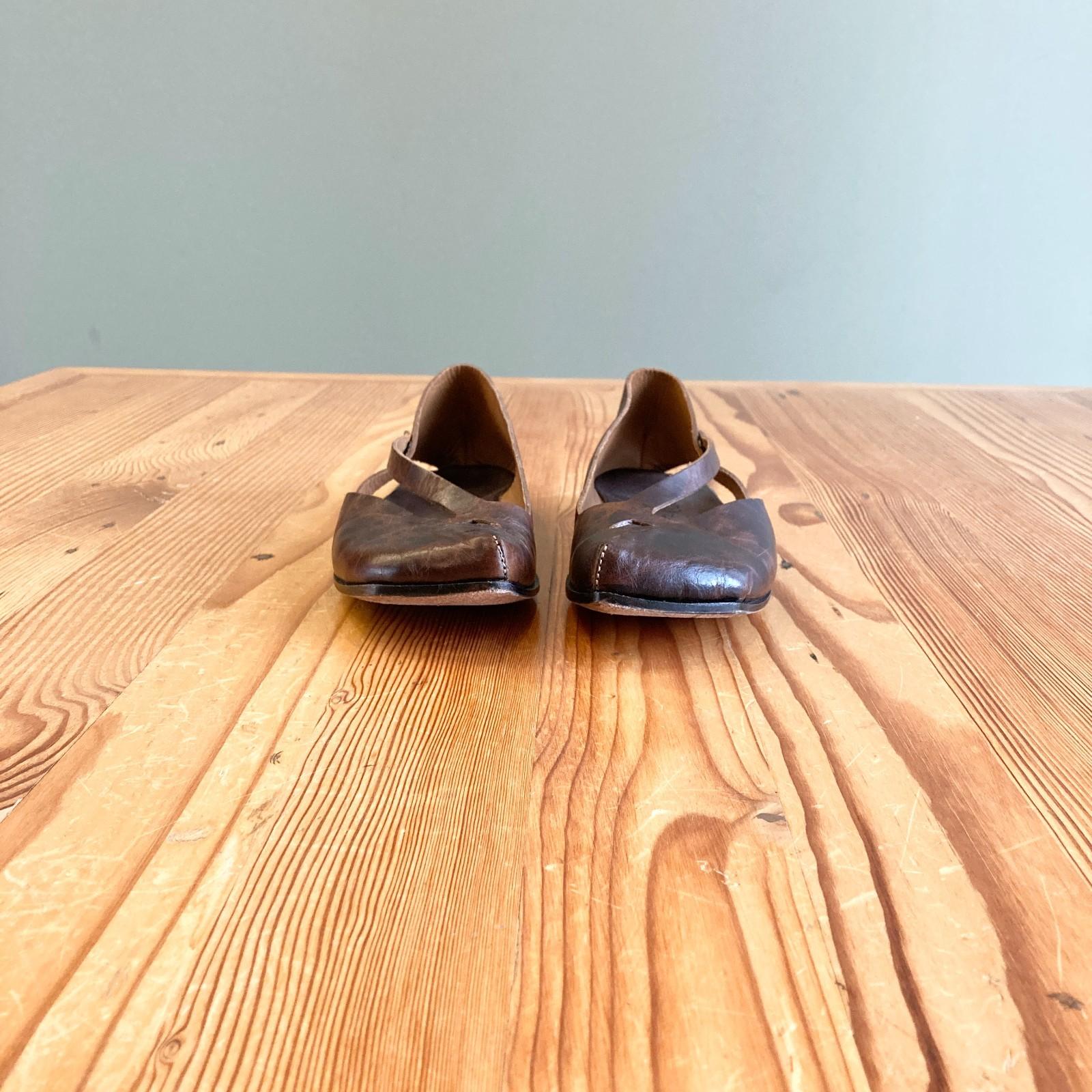 39 / 9 - Cydwoq Brown Leather Hand Made Cut Out Unique Flats Shoes 0721DK