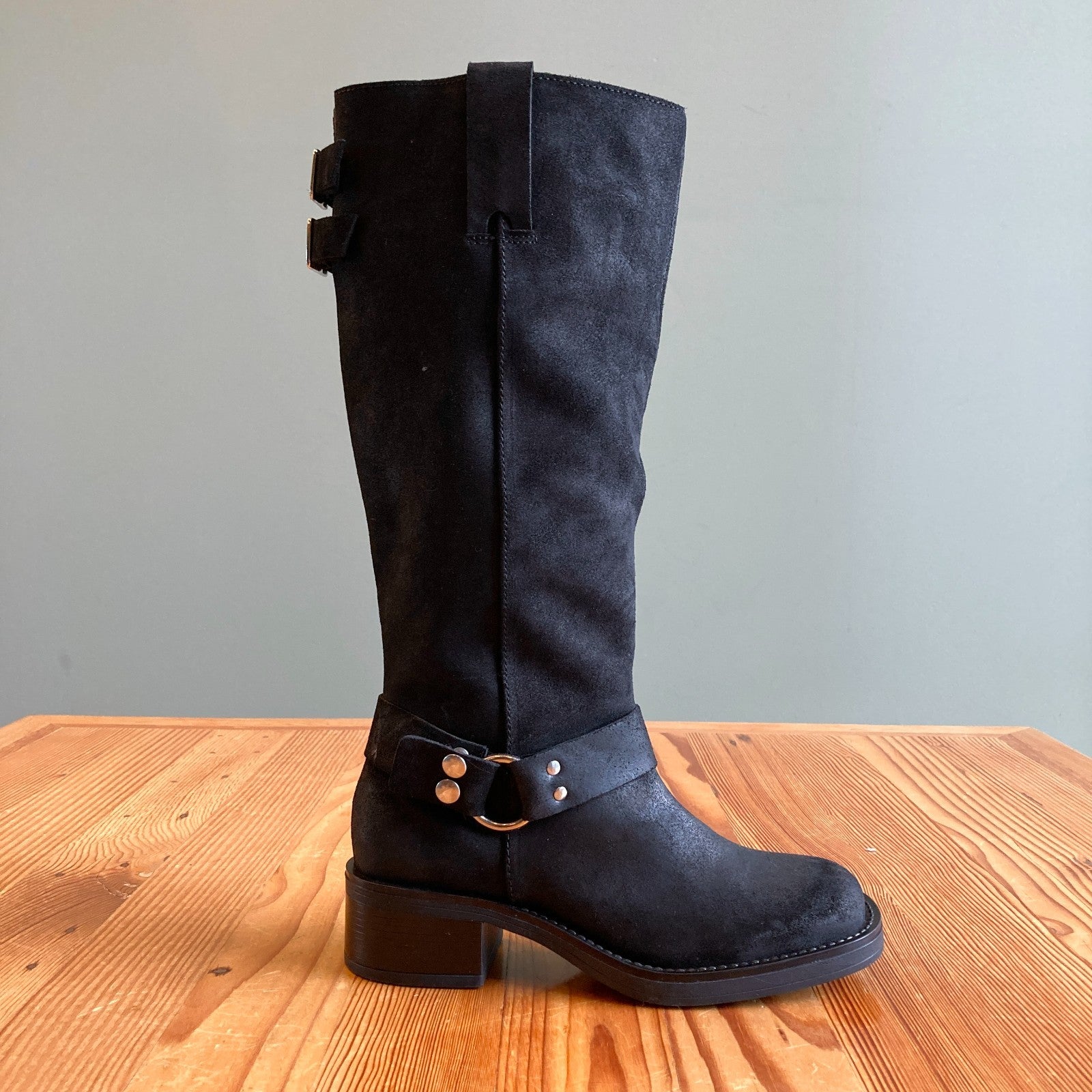 40 / 9-9.5 - by Anthropologie $260 Black Leather Knee High Moto Boots NEW 0114KE