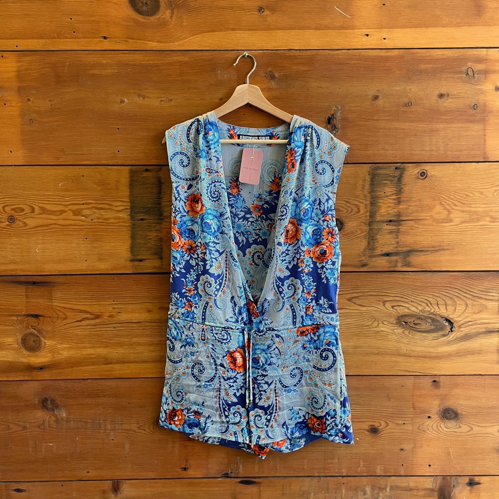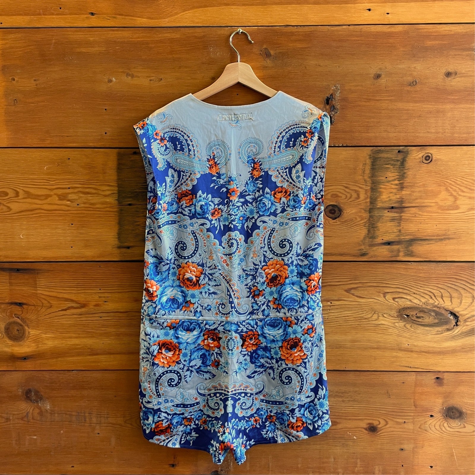 42 / L - Denis Simachev Blue Paisley Patterned Silk Romper Outfit 1202NB