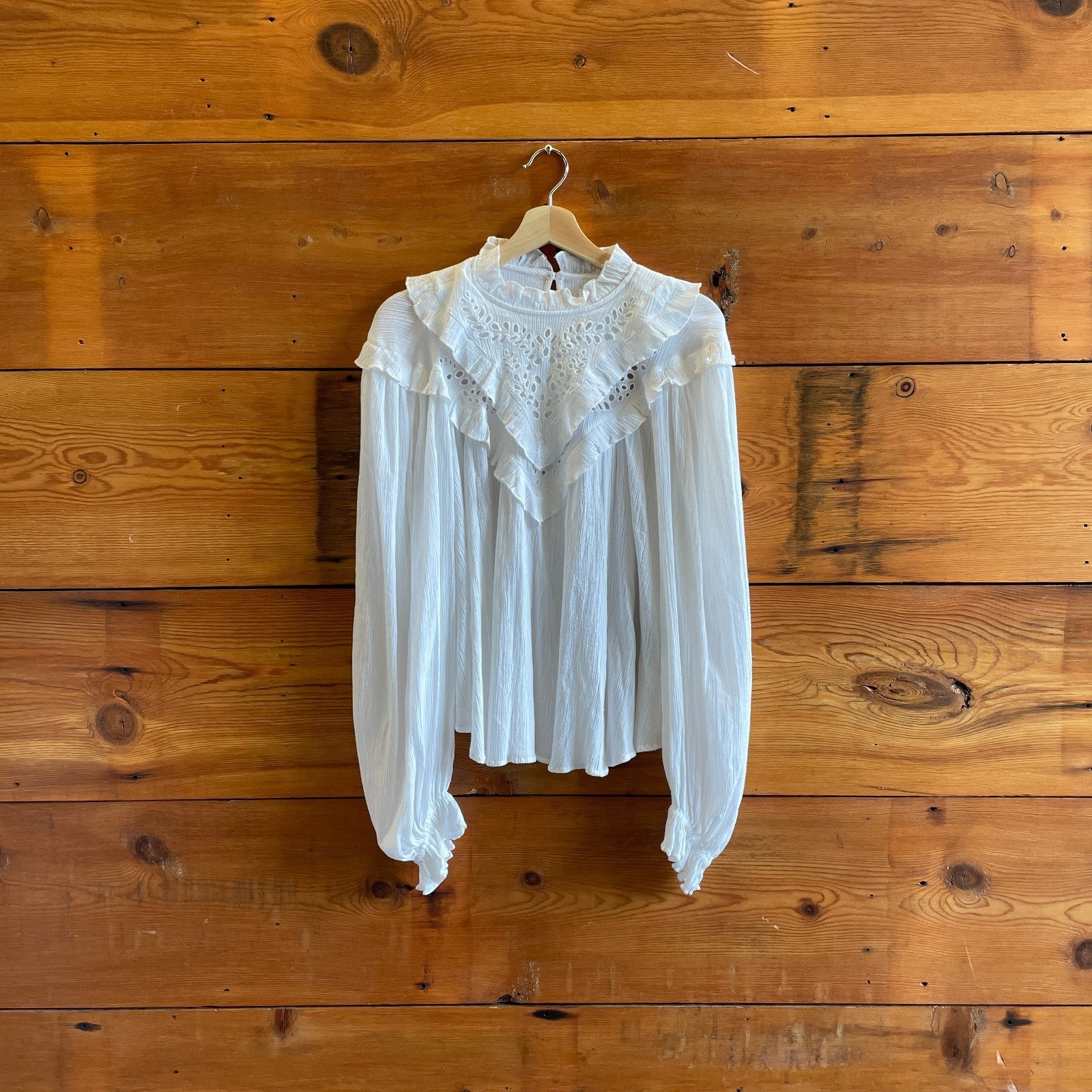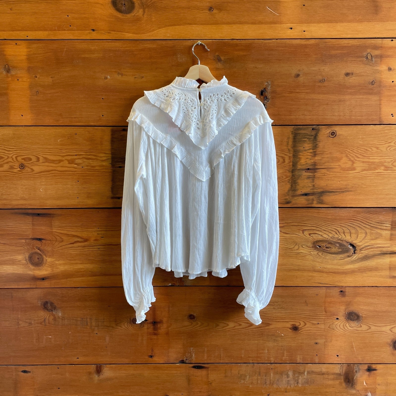 42 / L - Isabel Marant White Ruffled Long Sleeve Embroidered Eyelet Top 0815LO