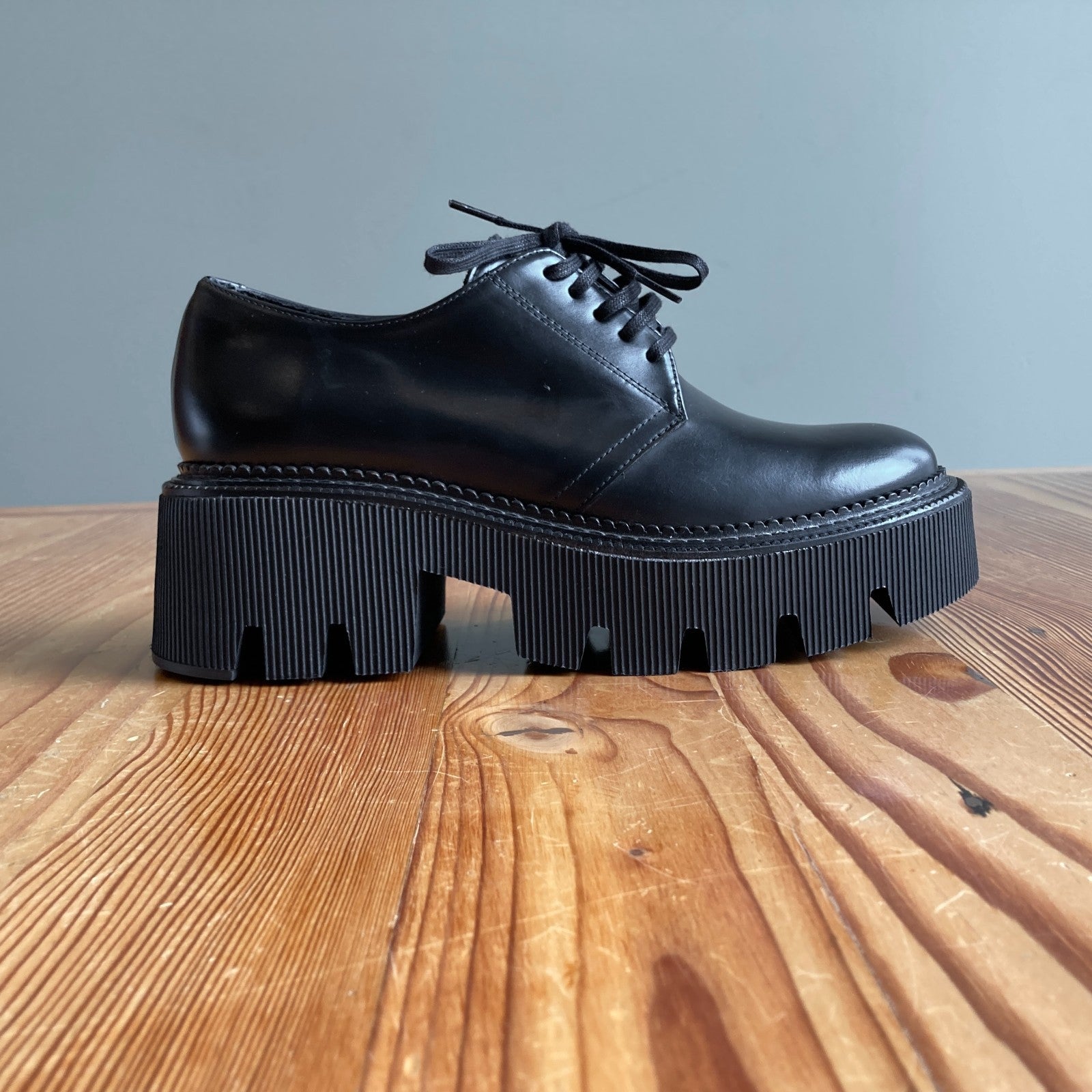 6.5 - Freda Salvador Smooth Black Leather Keena Lug Sole Oxford Shoes 0312IG