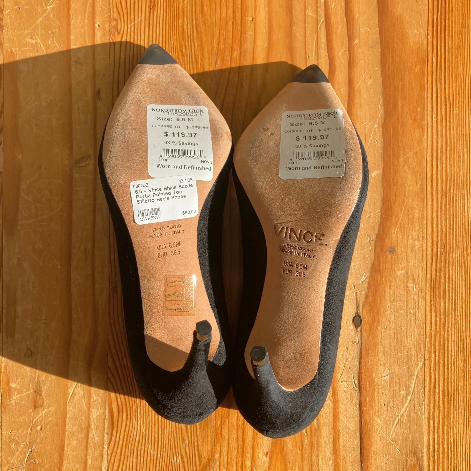 6.5 - Vince Black Suede Portia Pointed Toe Stiletto Heels Shoes NEW 0802DZ