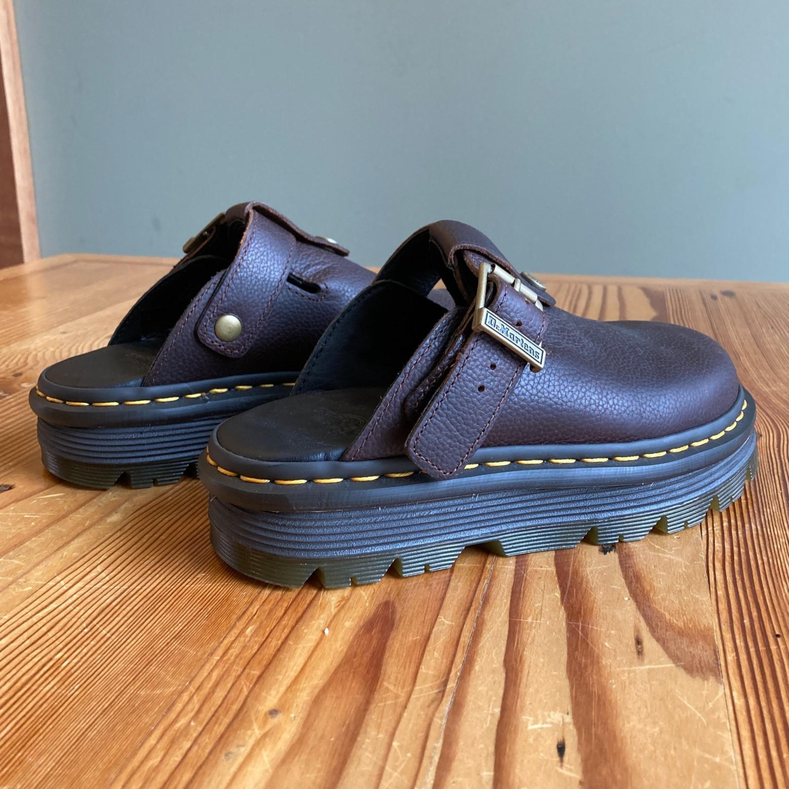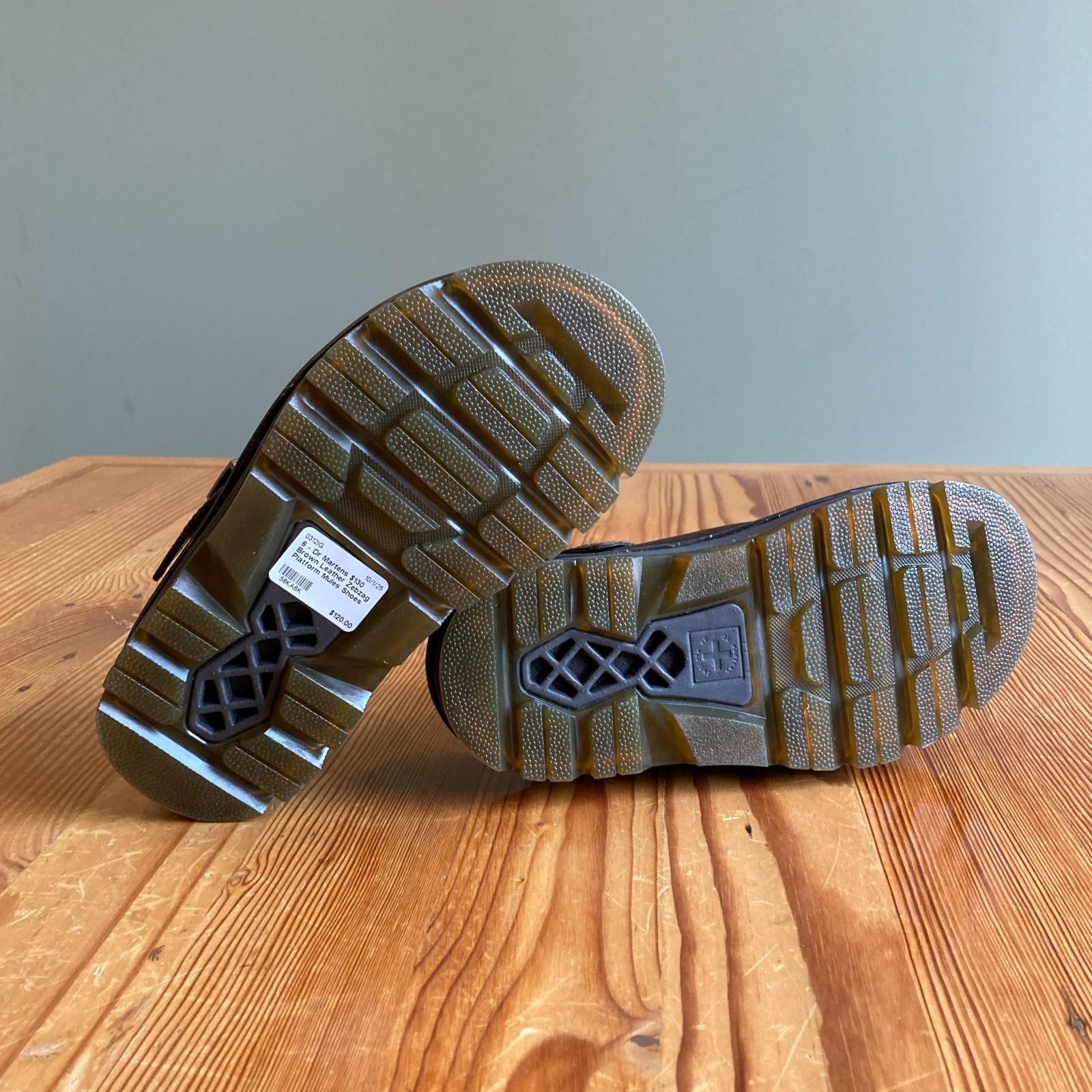 6 - Dr Martens $130 Brown Leather Zebzag Platform Mules Shoes NEW NWOB 0312IG