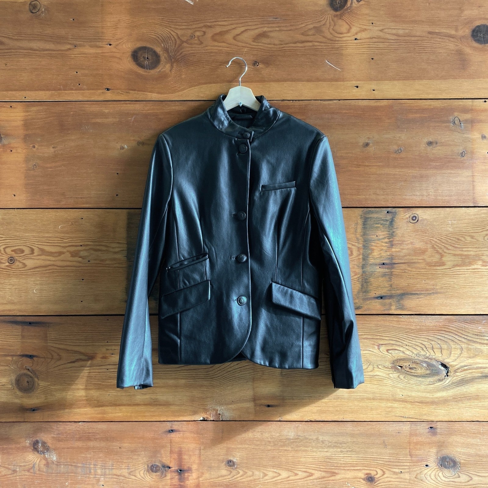 6 - Rag & Bone Black Faux Leather Button Front Slade Blazer Jacket 0504AK