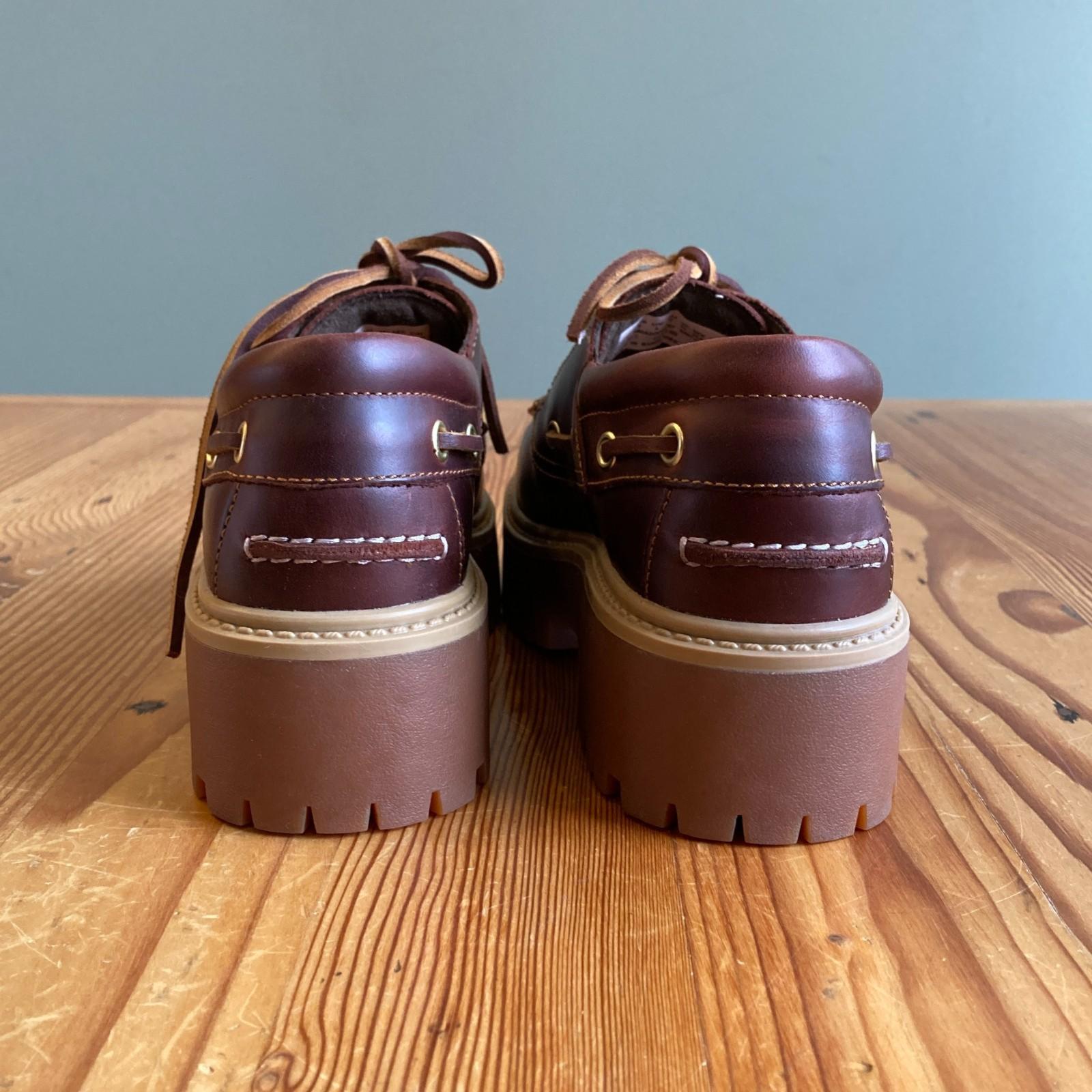 6 - Timberland $130 Brown Leather Platform Stone Street Boat Shoes NEW 0312IG