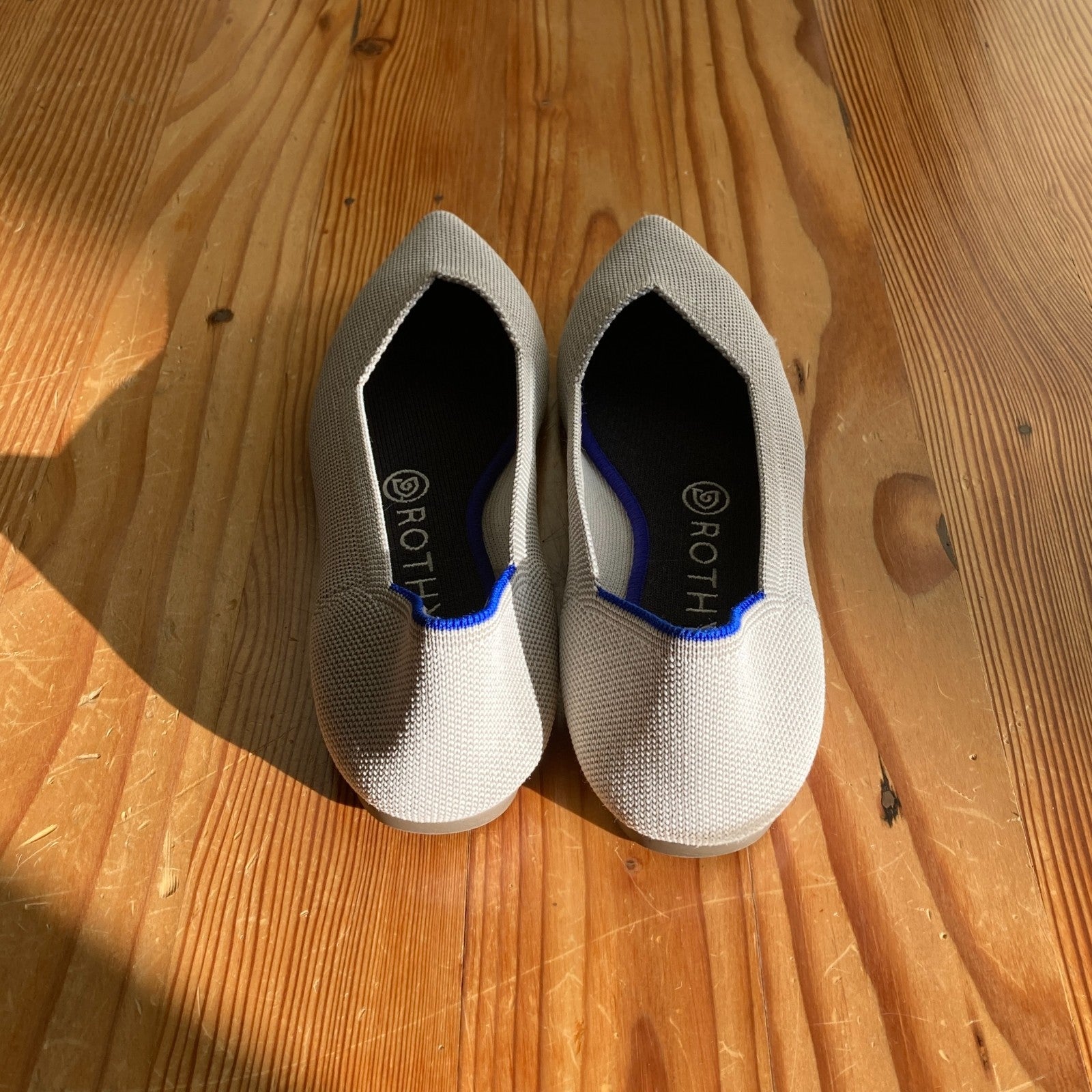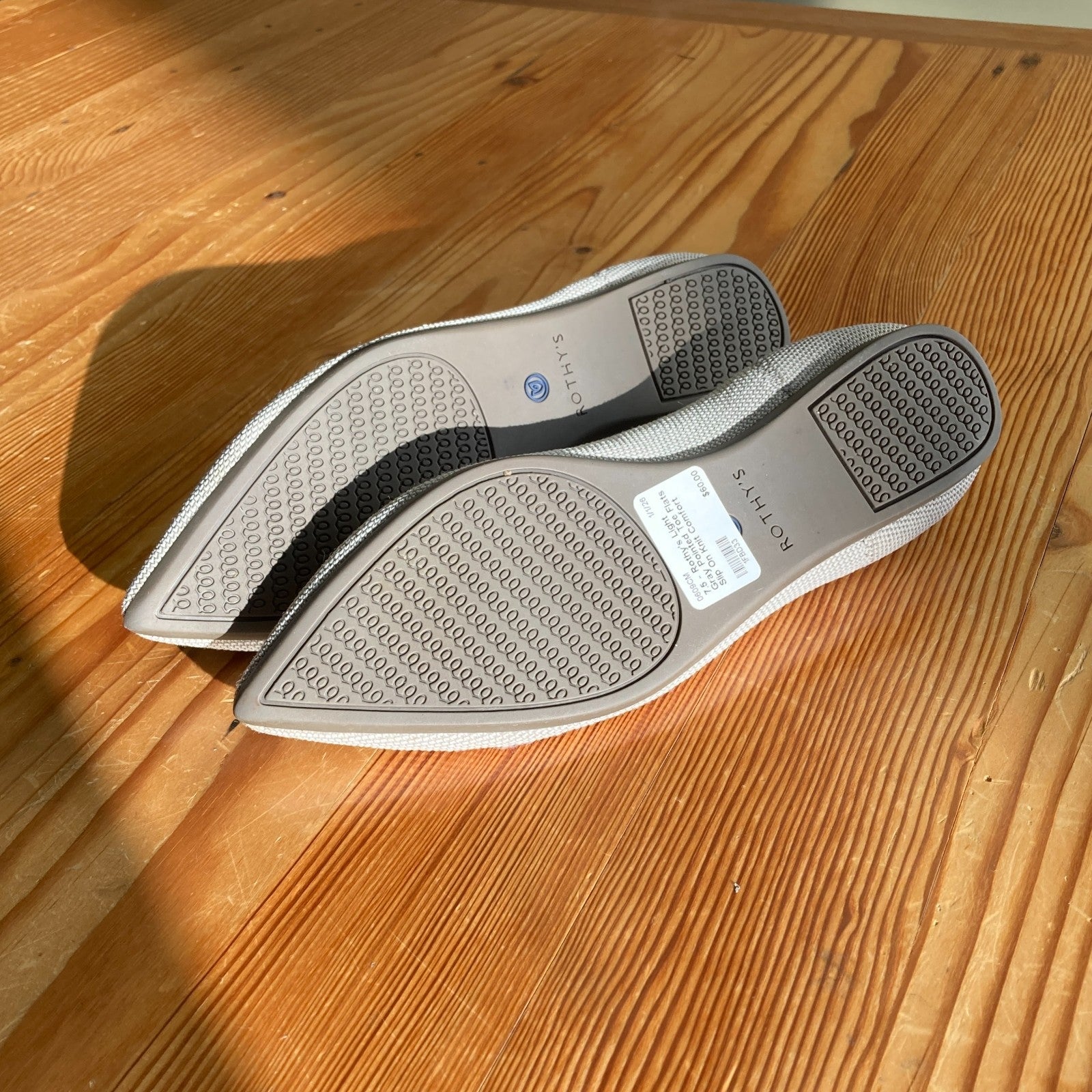 7.5 - Rothy's Light Gray Pointed Toe Flats Slip On Knit Comfort Shoes 0609CM