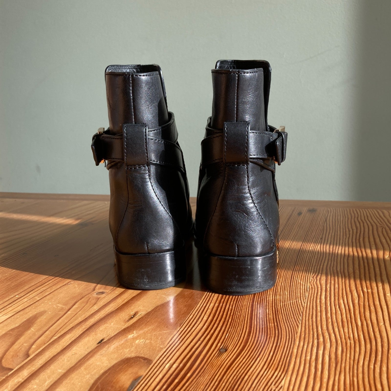 7.5 - Tory Burch Brooke Black Leather w/ Gold Tone Buckle Ankle Boots 0315MN