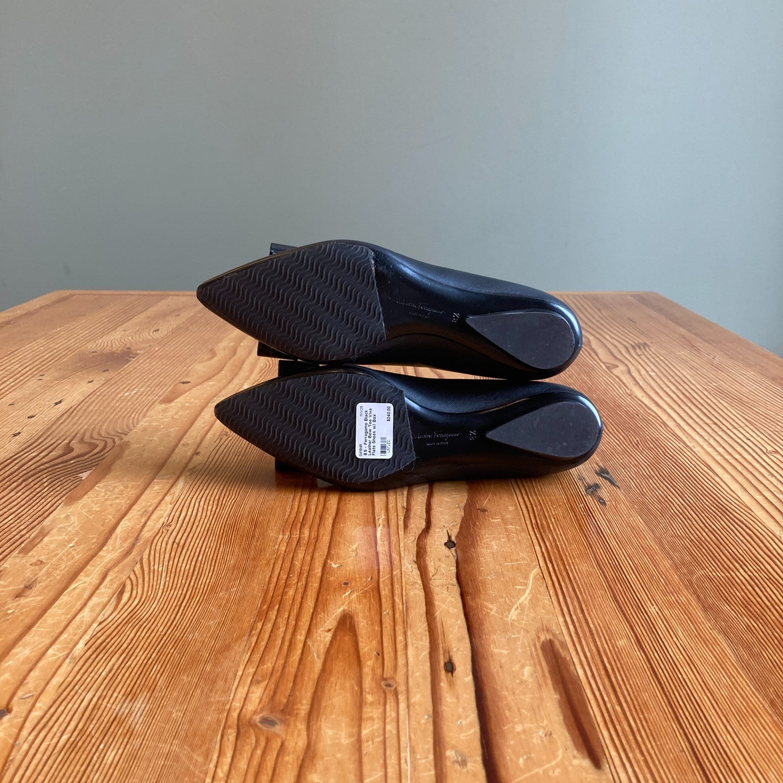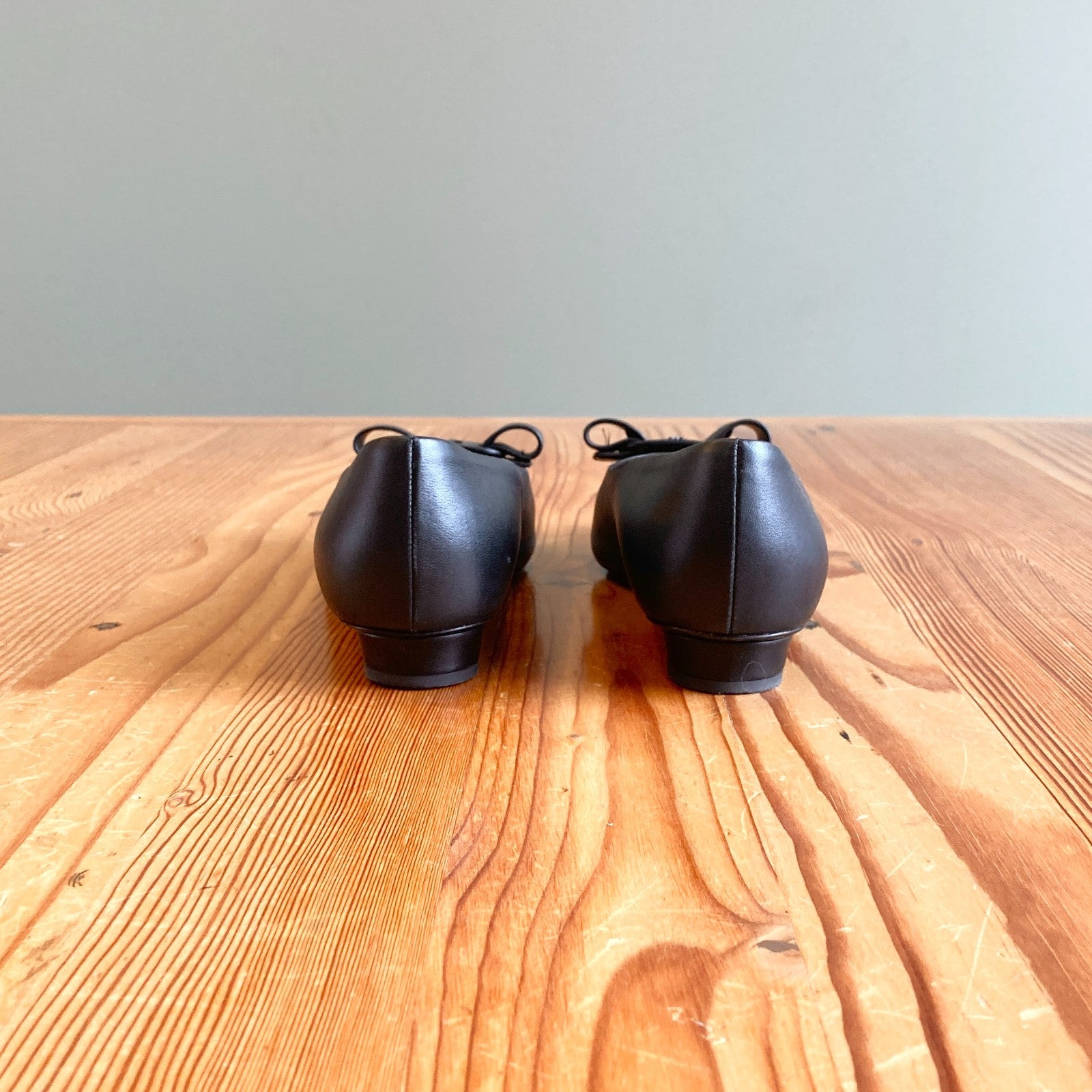 8.5 - Ferragamo Black Leather Bow Toe Viva Flats Shoes w/ Box 0419NR