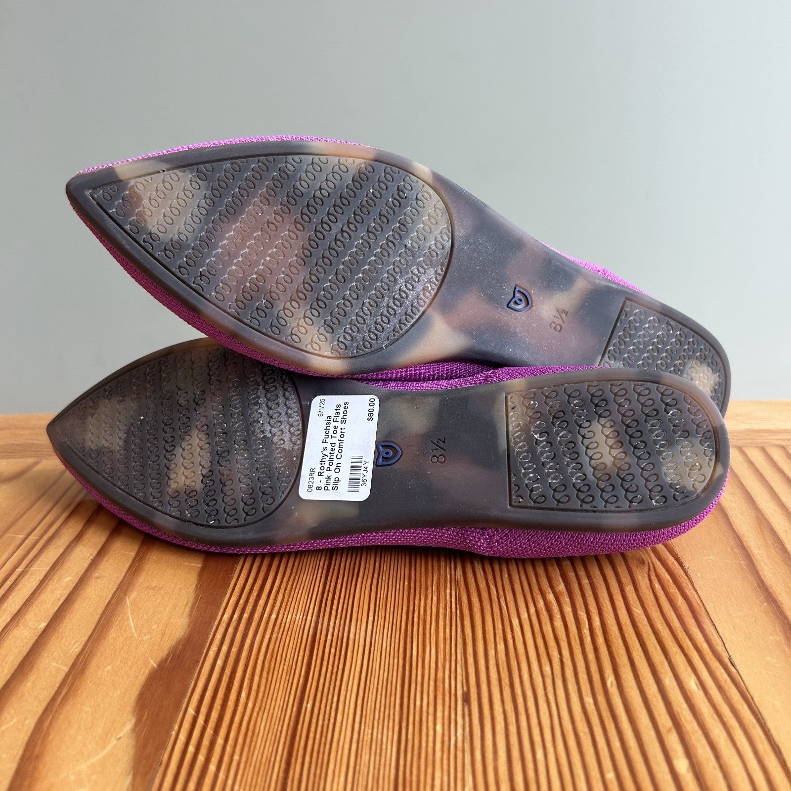 8.5 - Rothy's Fuchsia Pink Pointed Toe Flats Slip On Comfort Shoes 0823RR