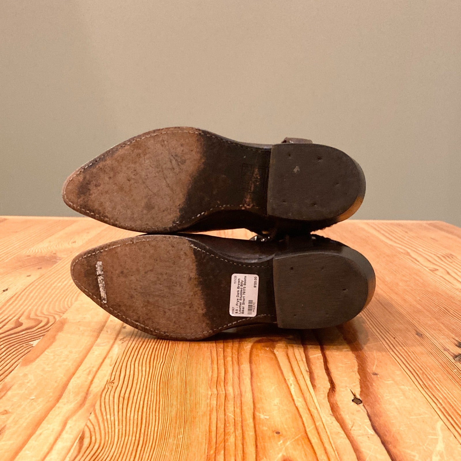 9.5 - Frye Dark Brown Leather Studded Billy Biker Short 76175 Boots 1111KF