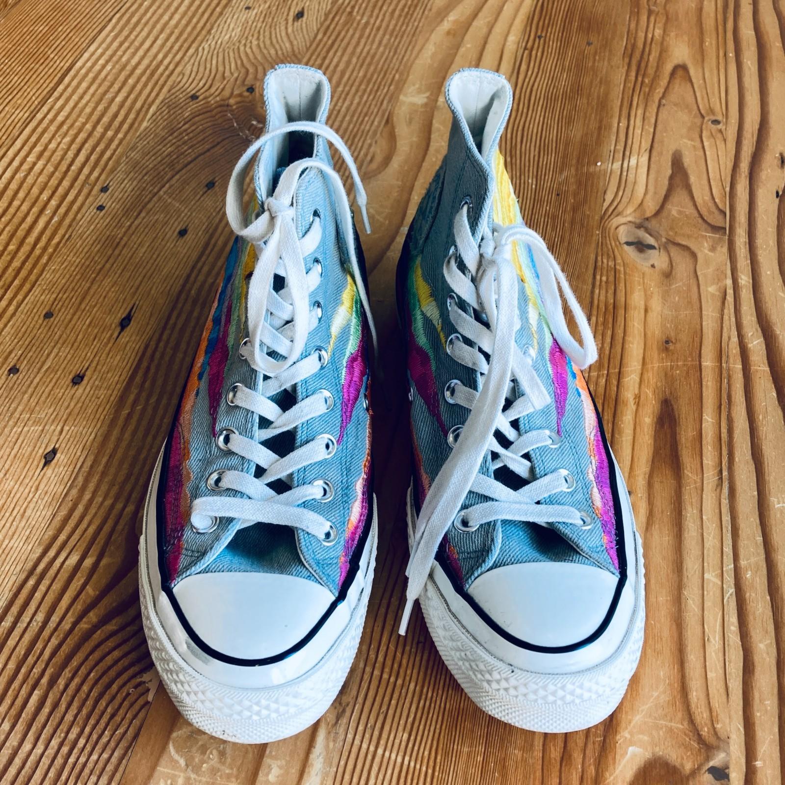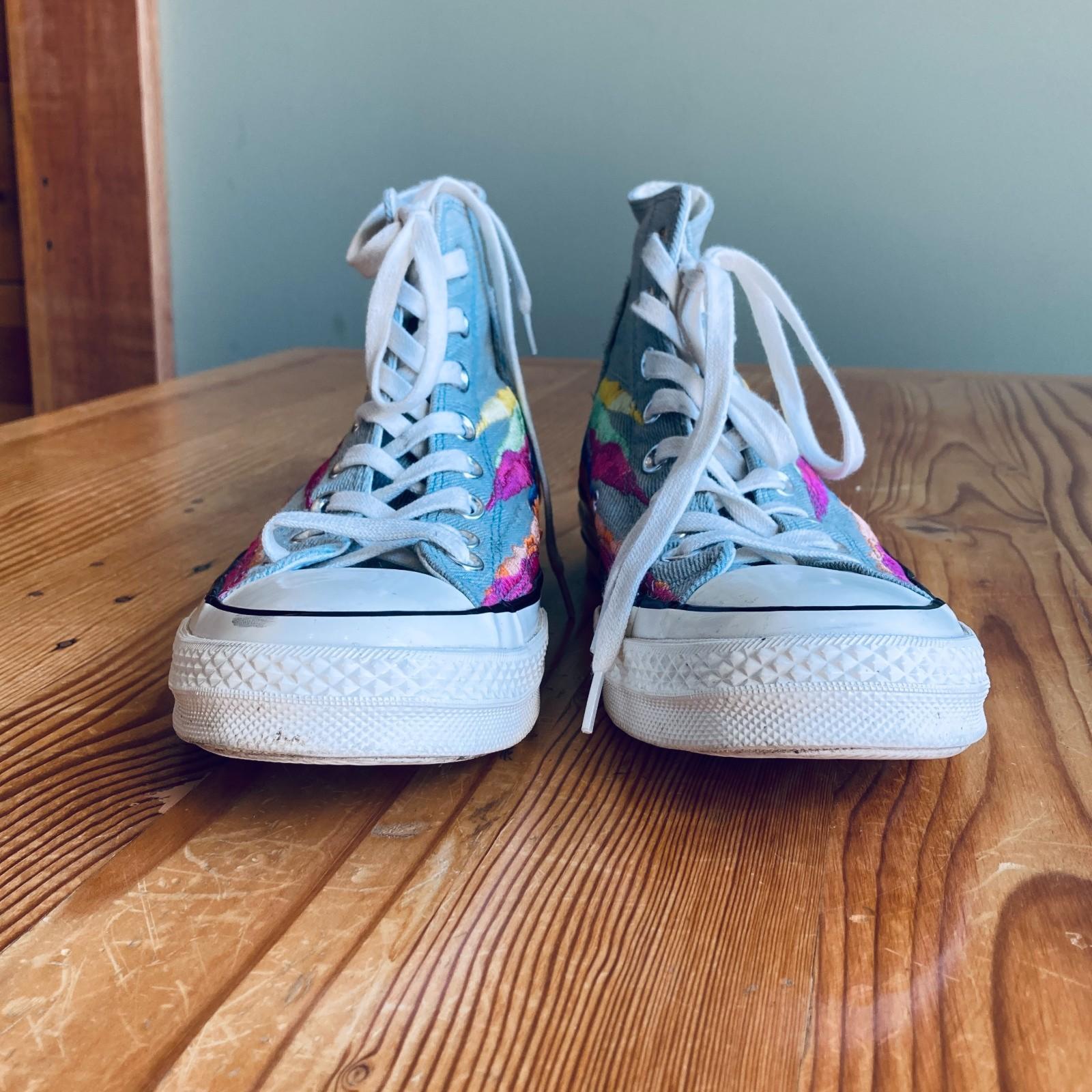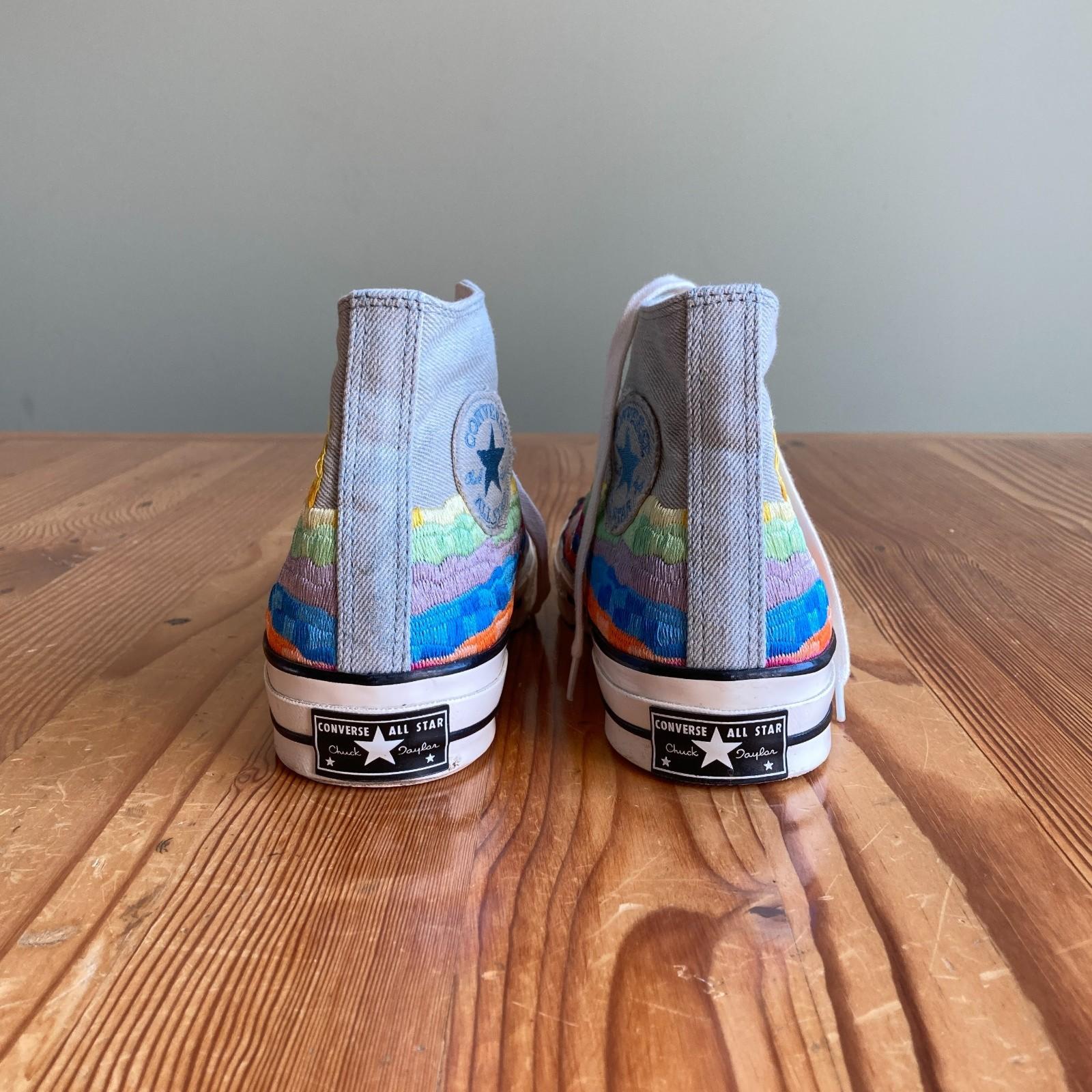 - Gray colorful embroidered Converse x Mara Hoffman sneakers
