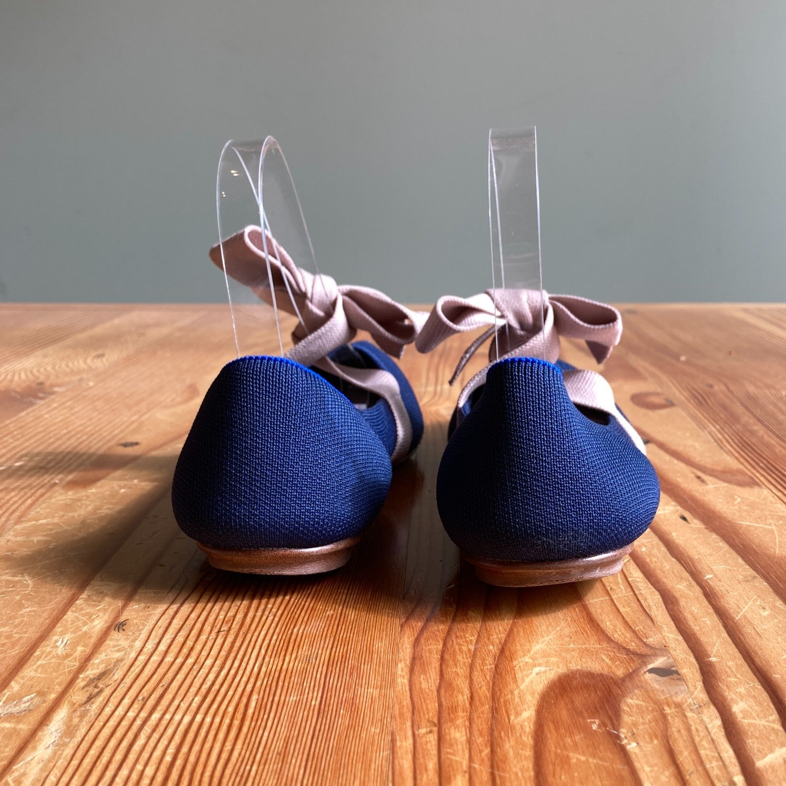 9 - Rothy's Navy Blue The Slip On Mary Jane Beige Bow Flats Shoes 0306CH