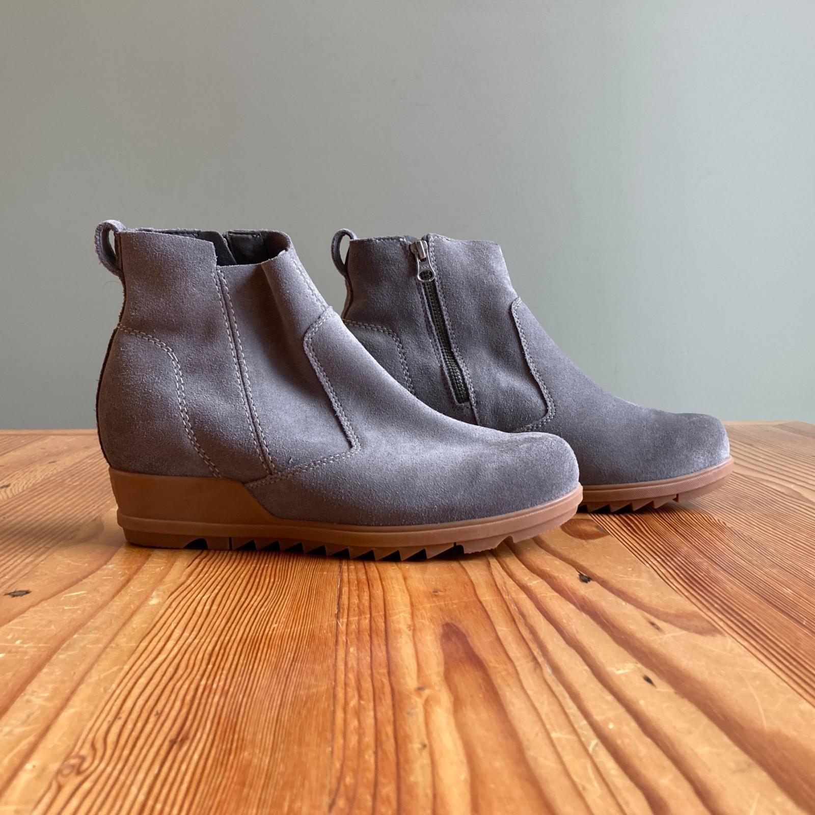 9 - Sorel Gray Suede 2.5" Wedge Zip Bootie NL3313-052 Ankle Boots 0830QL