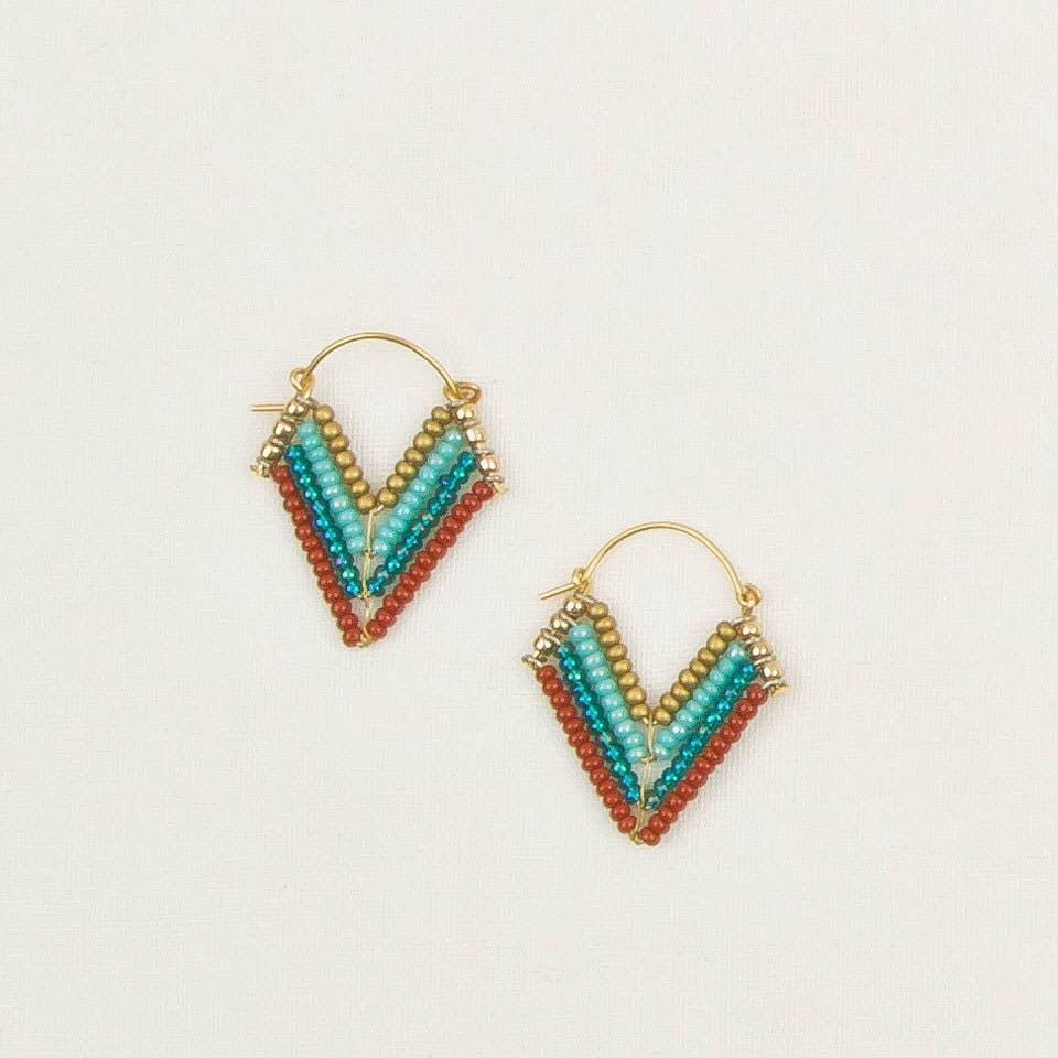 Our chic small wire V hoop earrings add a rich pop of color with a classic design. These petite, hip earrings are handcrafted from colorful glass beads and sterling plated jewelry wire, woven in a bold chevron pattern. Pair with our Bead & Wire V necklace.