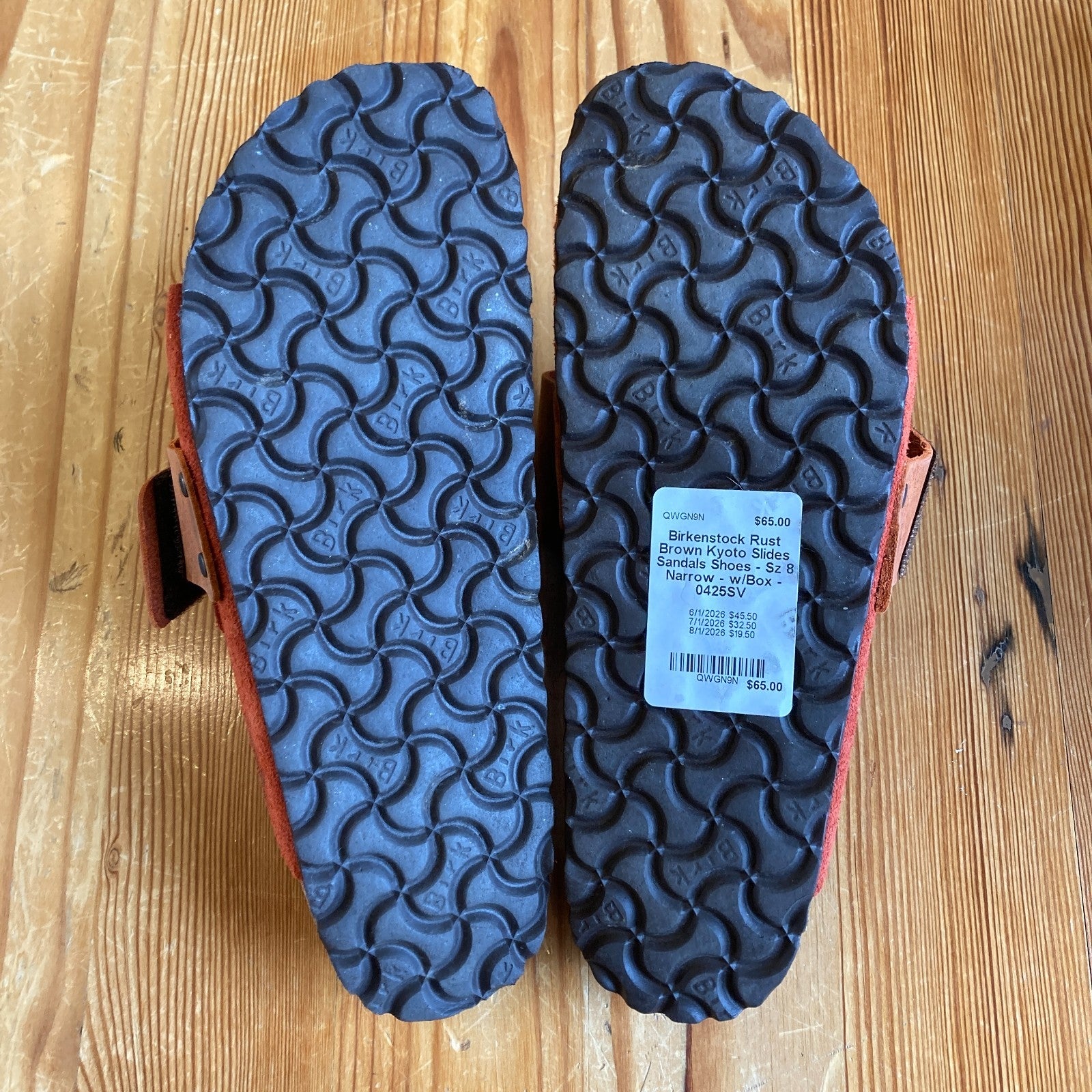 Birkenstock Rust Brown Kyoto Slides Sandals Shoes - Sz 8 Narrow - w/Box - 0425SV