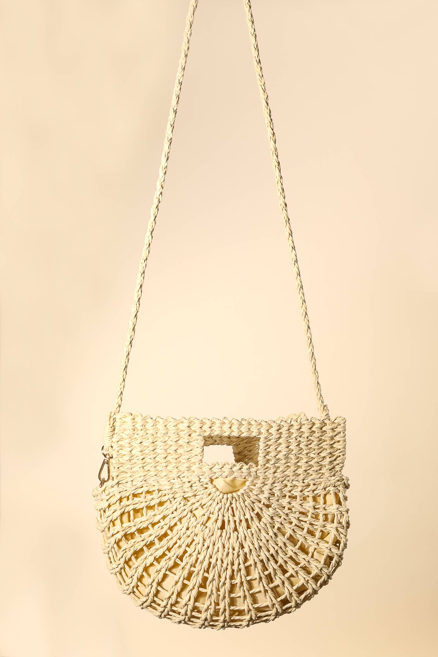 This piece is both timeless and on-trend, this tote bag contains a special braided semi circle design. This tote bag is ideal for both casual and formal events, adding a touch of sophistication to any outfit. Available in IV, TA. This item is sold in packs of 1.