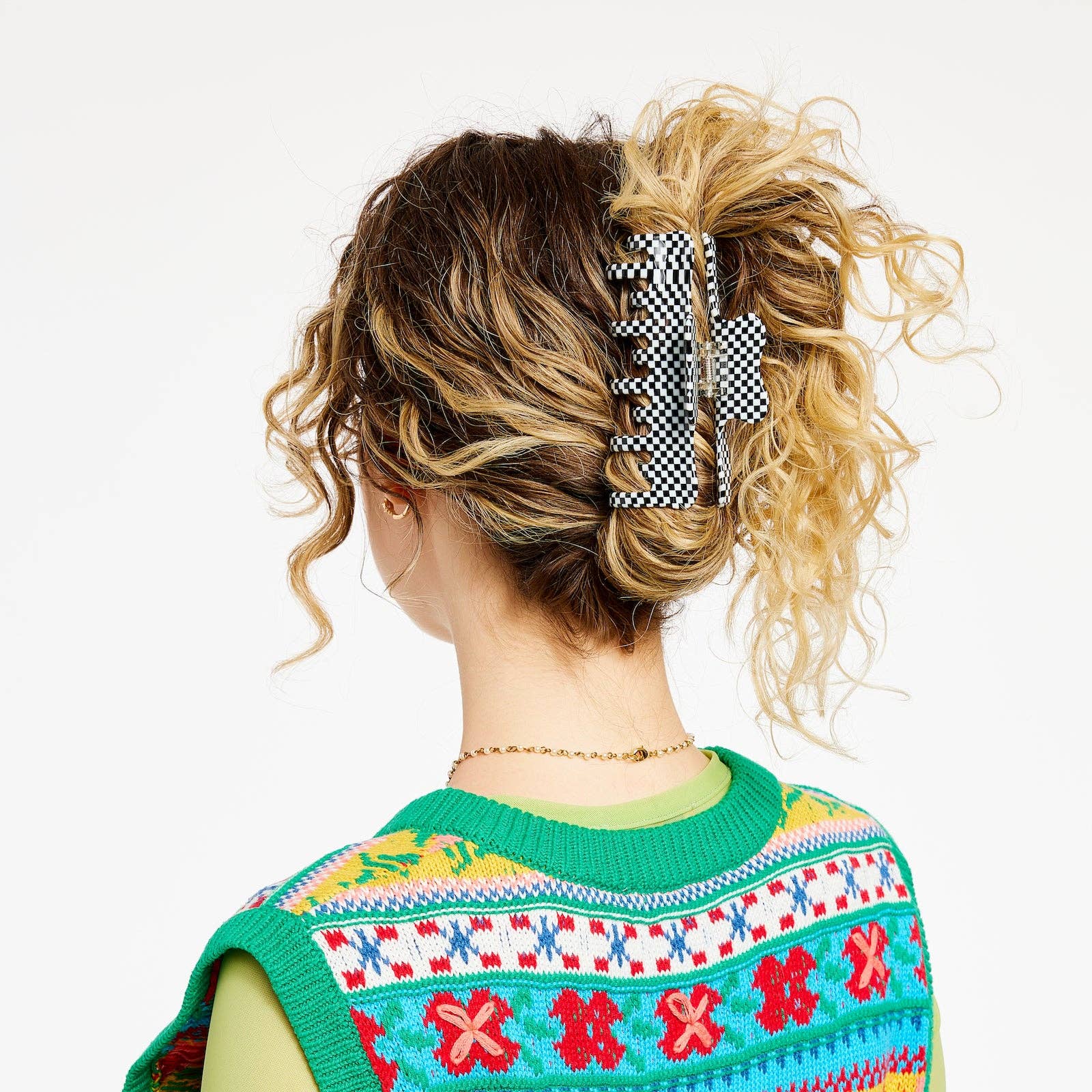 This claw has a double row of teeth for an extra secure hold. Works with all hair types and great for fine or slippery hair.