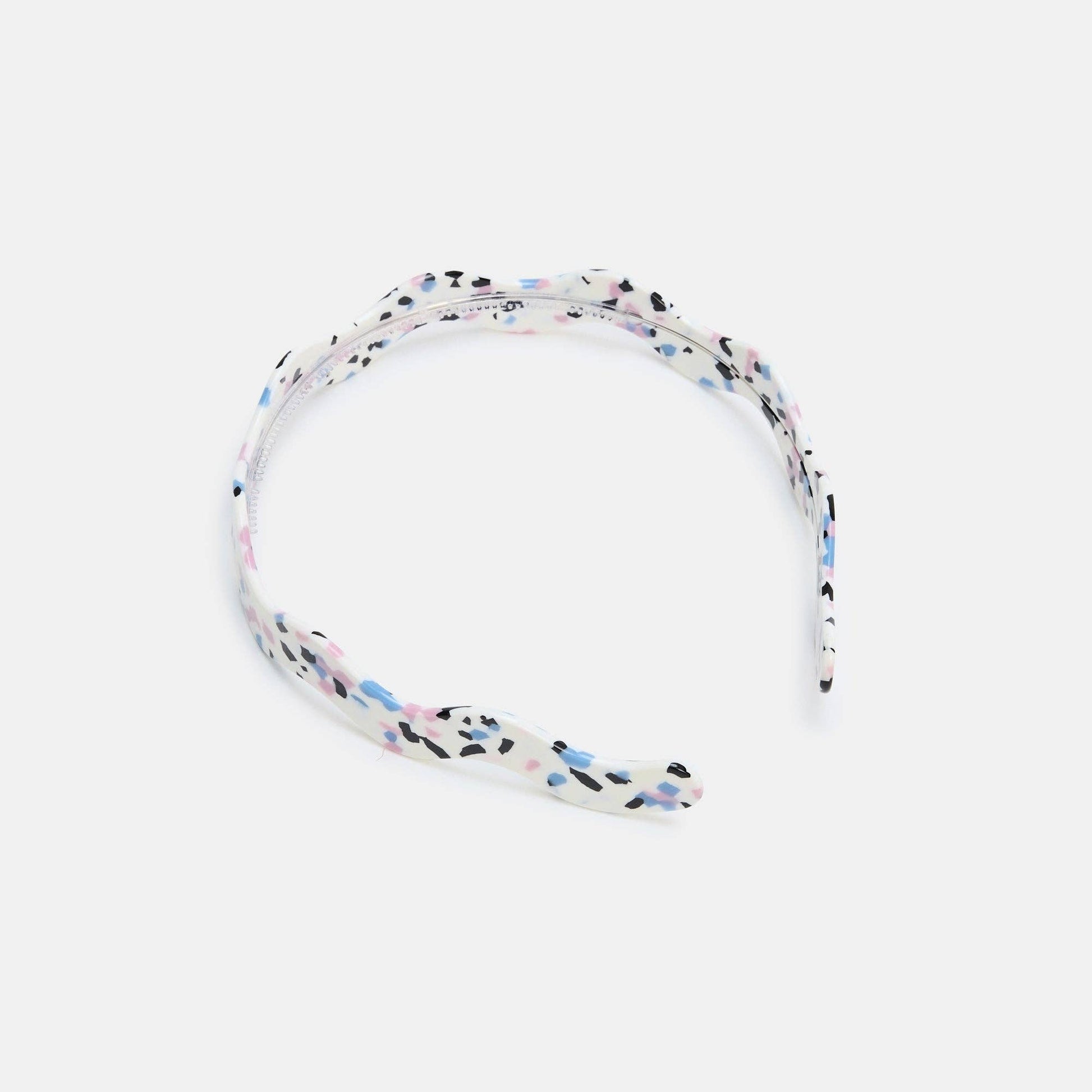 A simple and essential headband. Made from flexible, comfortable acetate, reinforced with a shaping wire so it won't lose it's form.