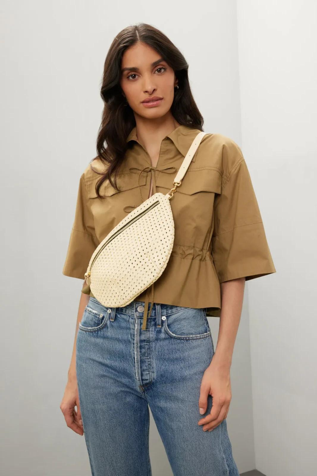 Clare V. Cream Perforated Grande Fanny Pack Crossbody Bag Purse 0425KN