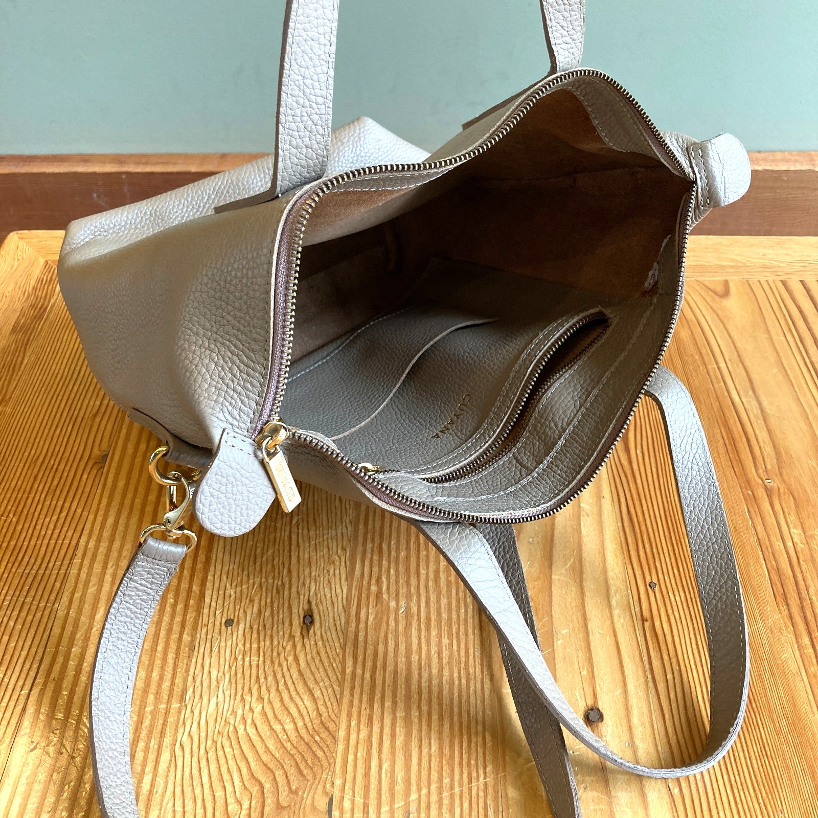 Cuyana Beige Pebbled Leather Carryall Tote Bag Purse 0131AG