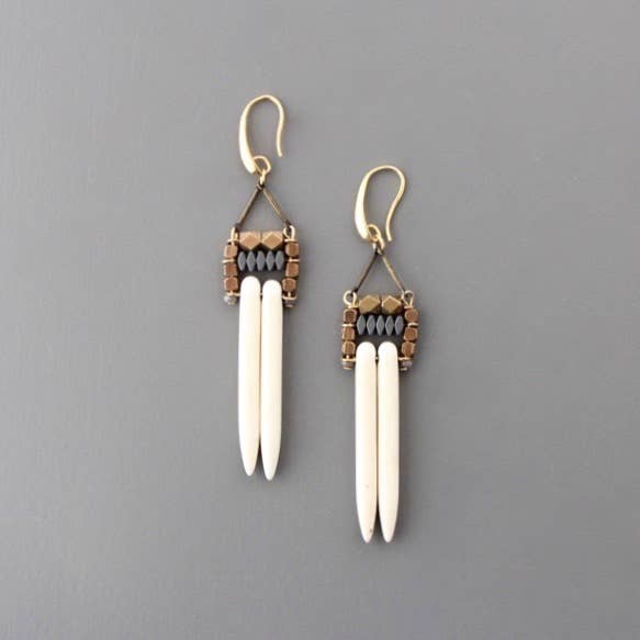 David Aubrey Jewelry - KMLE35 Geometric white spike and hematite earrings