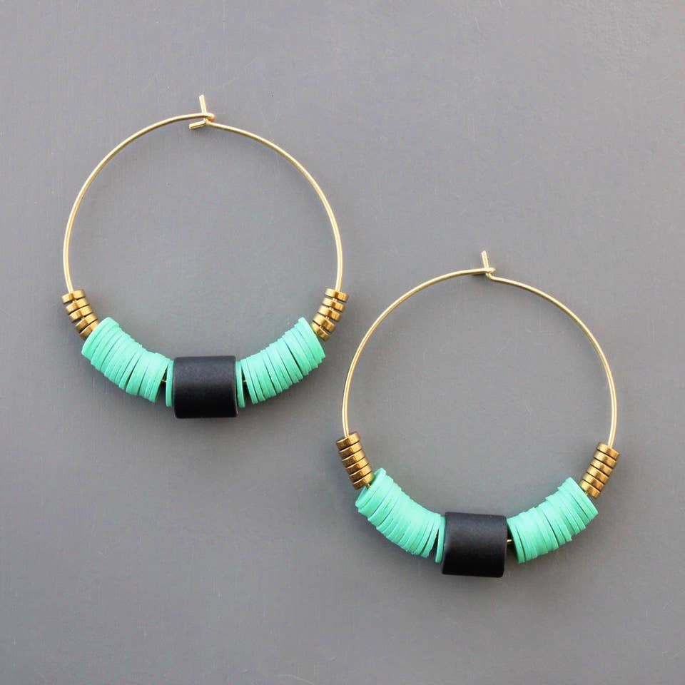 David Aubrey Jewelry - MDSE08 Green, black, and brass hoop earrings