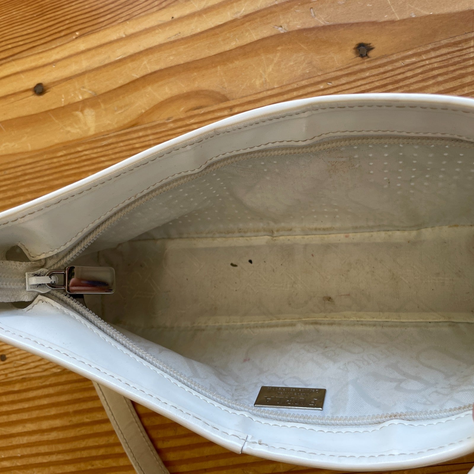 Furla White Perforated Leather Patent Leather Shoulder Bag Purse 0801SM