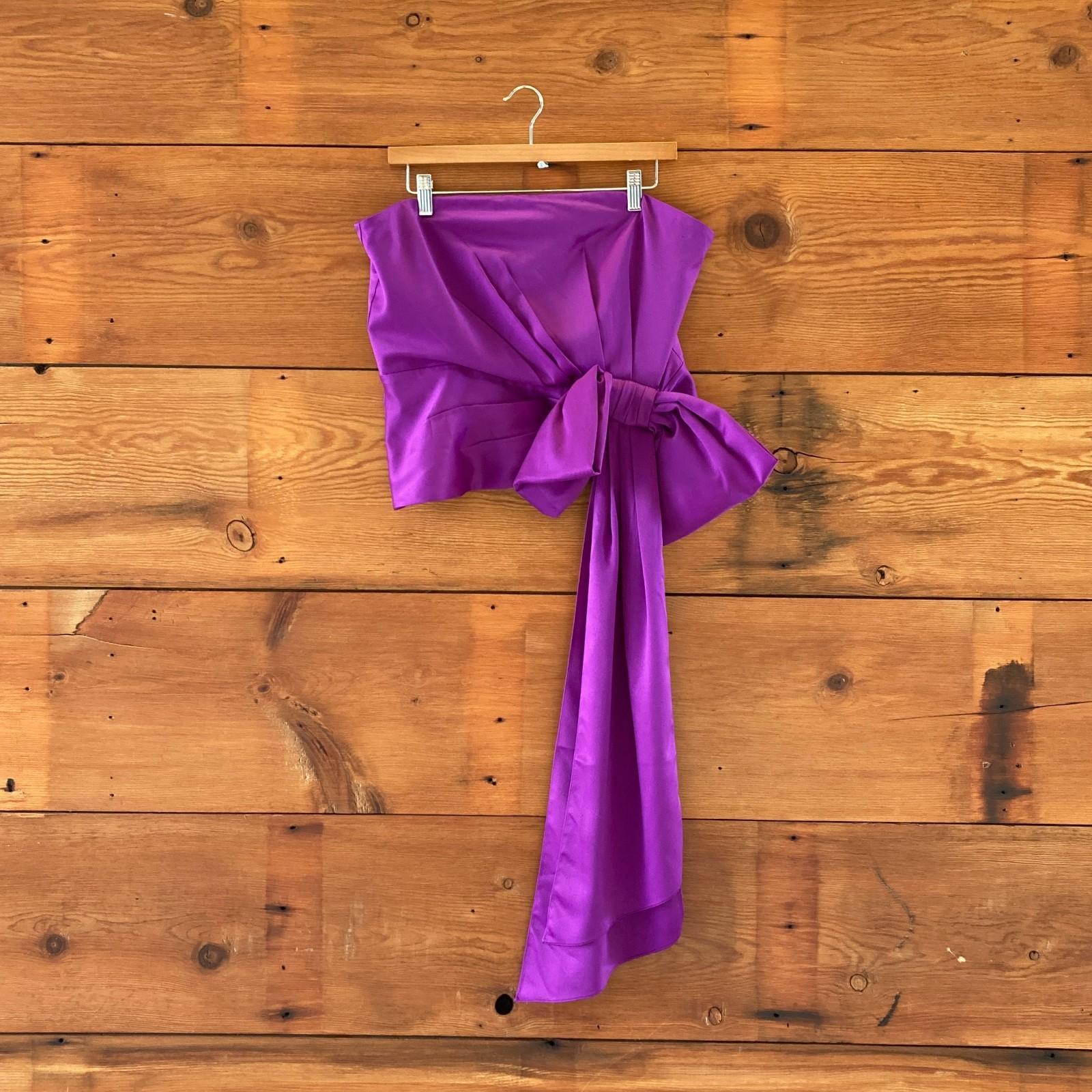 L - ATSU Purple Strapless NEW $168 Giant Bow Holiday Tube Top Shirt 1215KM
