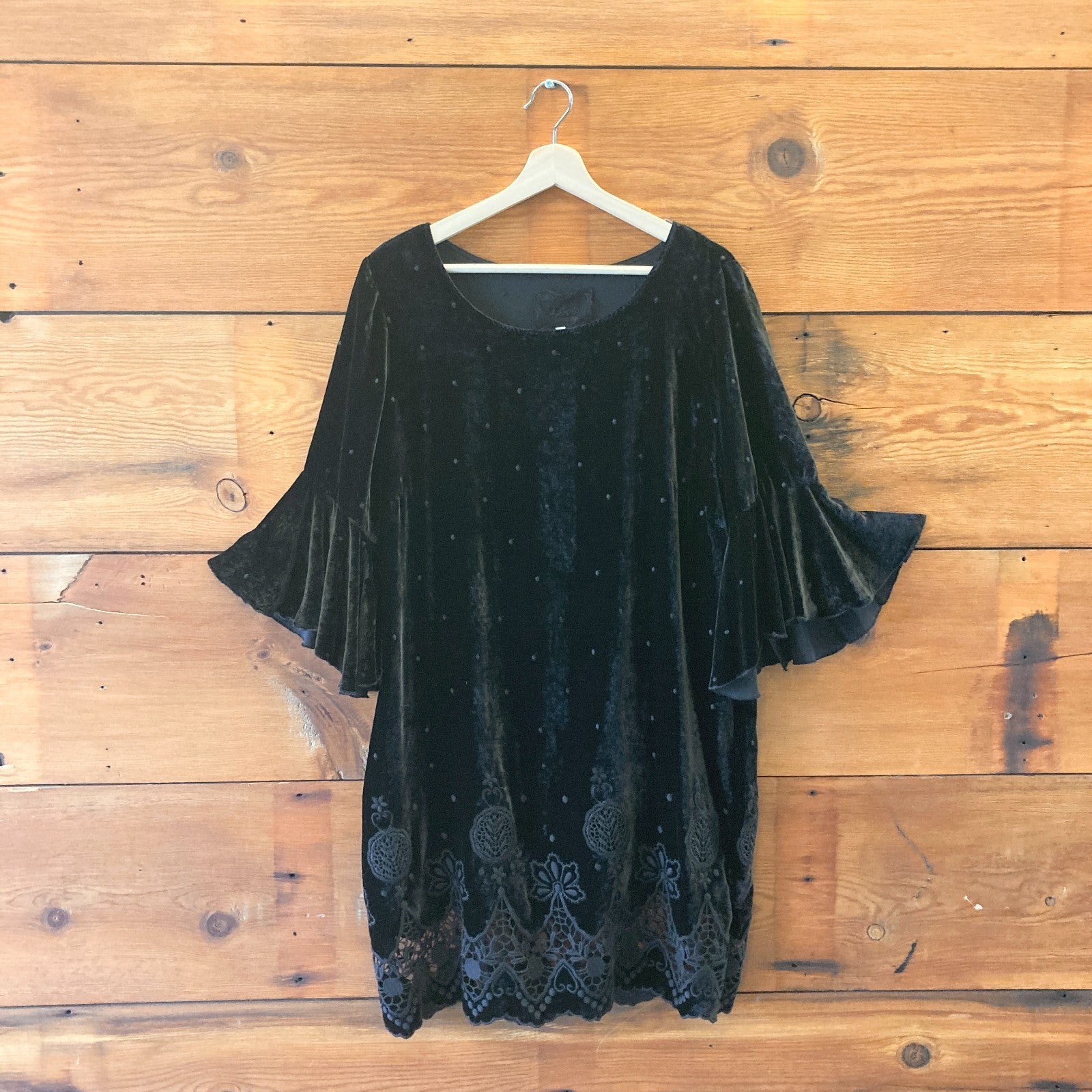 L - Love Johnny Was Black Velvet Liona Silk Blend 3/4 Sleeve Shift Dress 1102LL