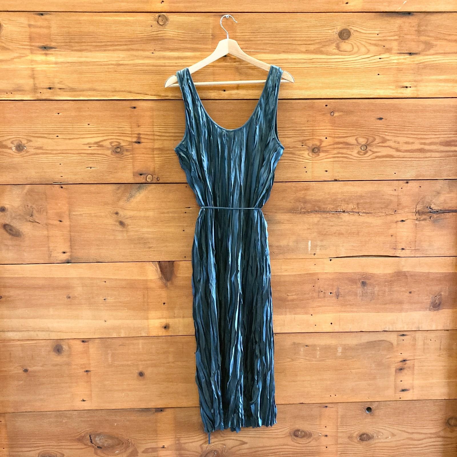 L - Vince Marine Stone Teal Crushed Satin Bias Tank Dress 0523HS