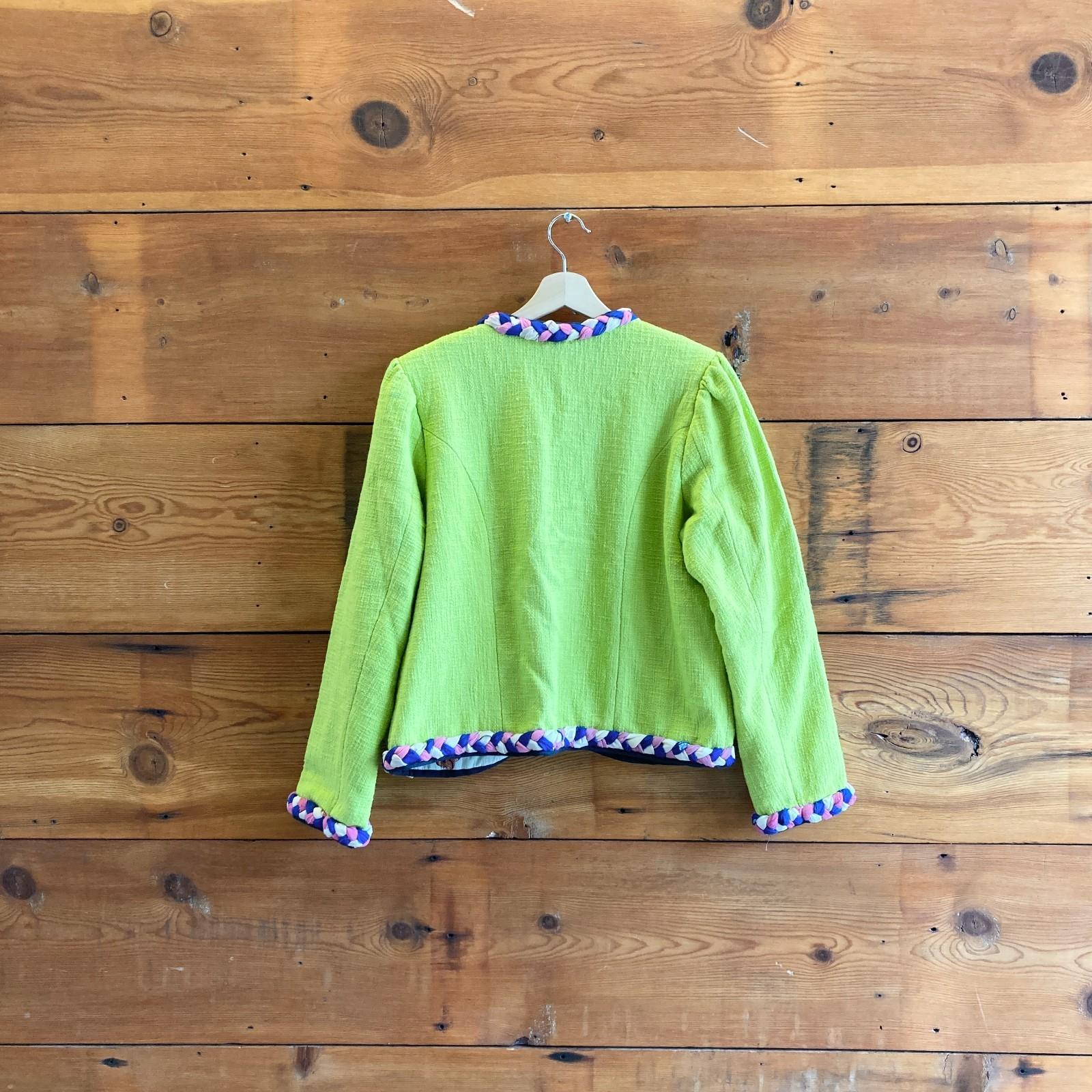 M - Alix of Bohemia $1280 Acid Green Marilou Braided Trim Cotton Jacket 0419NR