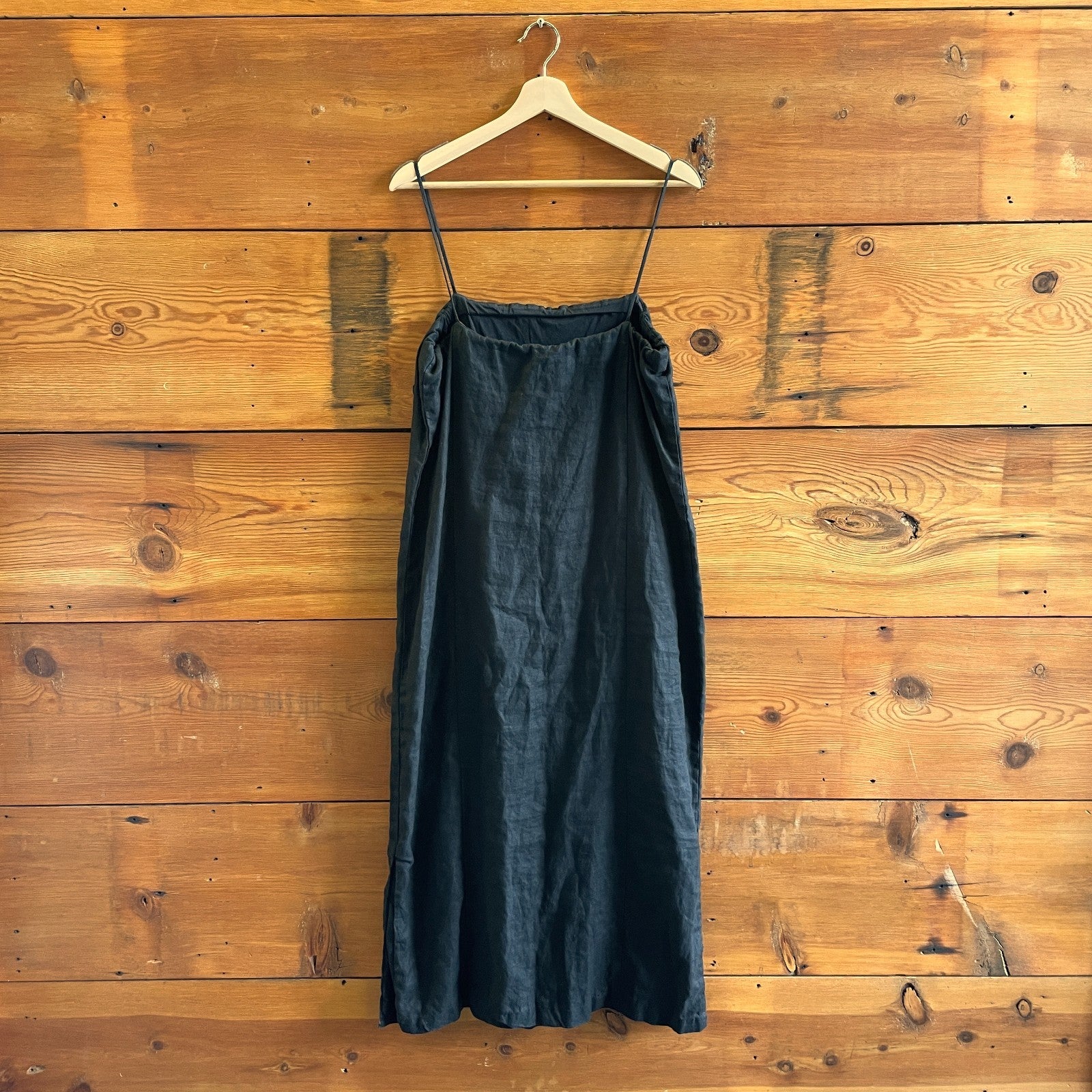 M - DONNI Black The Linen Spaghetti Strap Effortless Minimalist Dress 0713JM