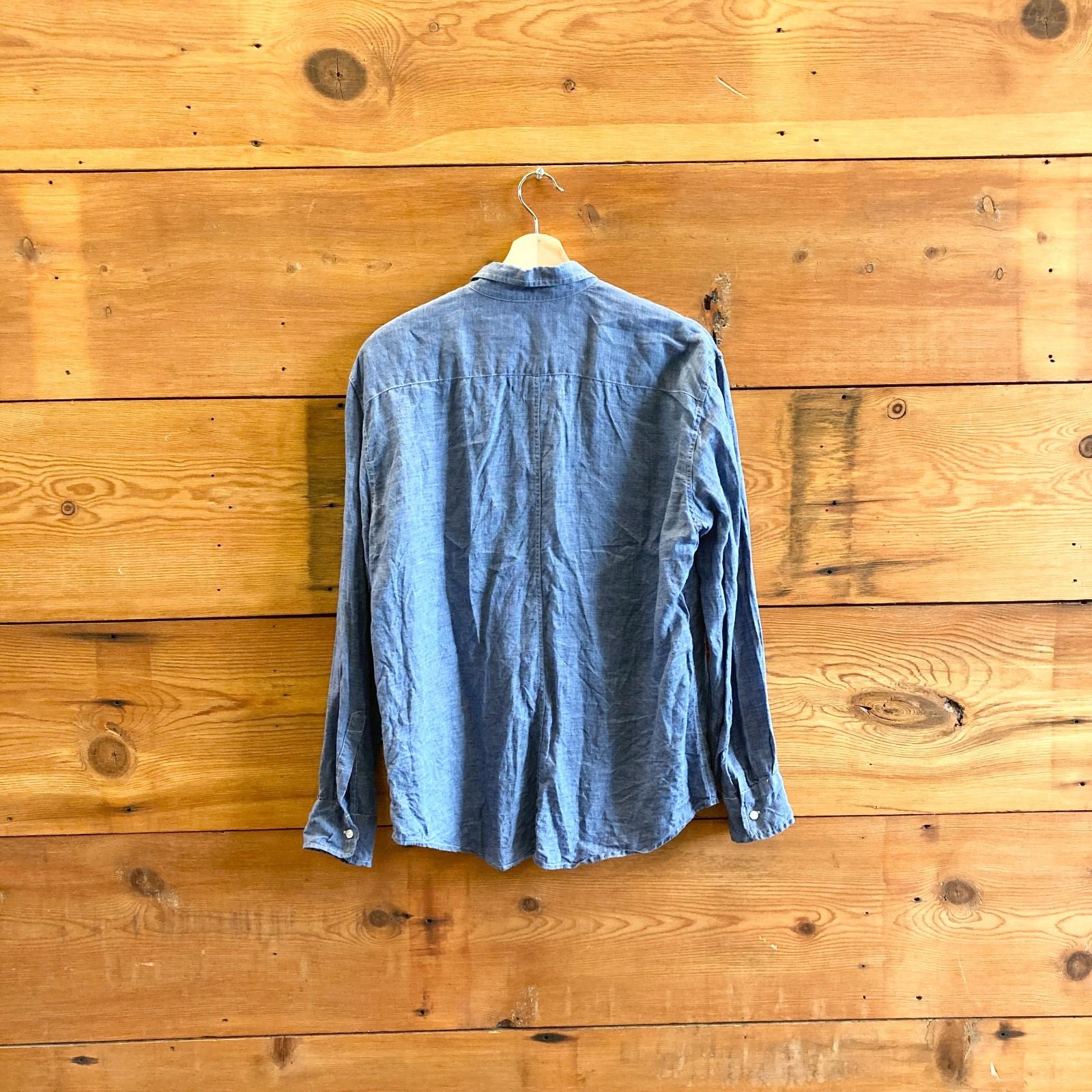 M - Frank & Eileen Blue Linen Long Sleeve Button Up Shirt Top 0721DK
